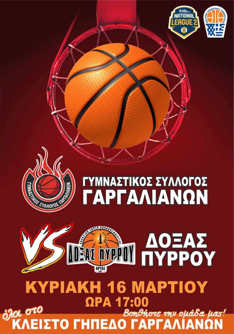 ΓΣ ΓΑΡΓΑΛΙΑΝΩΝ – ΑΕ ΔΟΞΑ ΠΥΡΡΟΥ ΑΡΤΑΣ 75-69: Εδραιώθηκε στην 3η θέση