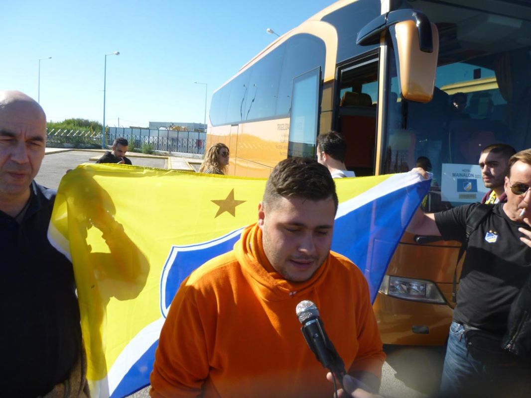 Εφθασαν στο "Καπετάν Βασίλης Κωνσταντακόπουλος" με πτήση τσάρτερ από τη Λάρνακα. Παίκτες, τεχνικό επιτελείο, μέλη της διοίκησης, αλλά και περίπου 100 φίλαθλοι έφθασαν στη μεσσηνιακή πρωτεύουσα με αφορμή την αυριανή αναμέτρηση της ομάδας τους με τον Αστέρα Τρίπολης για την 4η αγωνιστική των ομίλων του Europa League.