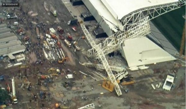 Τρεις άνθρωποι, σύμφωνα με τα βραζιλιάνικα Μέσα, έχασαν τη ζωή τους, όταν κατέρρευσε γερανός και παρέσυρε μέρος της οροφής στο γήπεδο της Κορίνθιανς, εκεί που έχει προγραμματιστεί να γίνει το εναρκτήριο παιχνίδι του Μουντιάλ του 2014. Στο στάδιο γίνονταν εργασίες και συγκεκριμένα τοποθετούταν ένα από τα τελευταία κομμάτια της οροφής, όταν ένας από τους γερανούς κατέρρευσε με αποτέλεσμα να προκληθούν σοβαρές ζημιές και τρεις άνθρωποι να τραυματιστούν θανάσιμα.