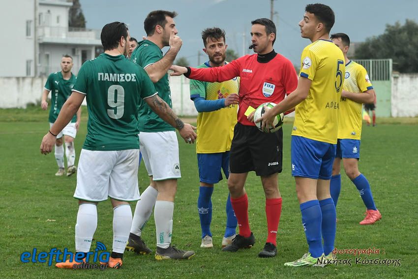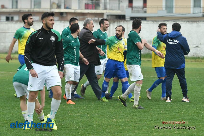 Δεν έλλειψε μάλιστα και η ένταση μεταξύ παικτών των δύο ομάδων, αλλά και ένθερμων φίλων του Παμίσου, όπως και οι διαμαρτυρίες του Αντώνη Μαυρέα προς τον διαιτητή Αλεξέα, προφανώς για τα λεπτά καθυστέρησης που κράτησε.
