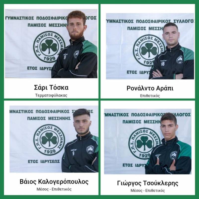 "Στην ομάδα του Παμίσου θα είναι και φέτος οι νεαροί, ταλαντούχοι και πολλά υποσχόμενοι ποδοσφαιριστές: Σάρι Τόσκα, Ρονάλντο Αράπι, Βάιος Καλογερόπουλος και Γιώργος Τσούκλερης. Είμαστε πολύ χαρούμενοι που θα τους έχουμε κοντά μας και αυτή την ποδοσφαιρική σεζόν και τους ευχόμαστε να έχουν υγεία και πολλές επιτυχίες με την φανέλα της ομάδας μας", σημειώνει η σχετική ανακοίνωση.