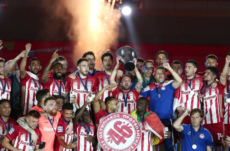 Στο τέλος της βραδιάς η Κάτια Κοξένογλου εκ μέρους της Σούπερ Λιγκ έκανε την απονομή. Ο Βαγγέλης Μαρινάκης φίλησε την κούπα του πρωταθλητή και μετά τη σήκωσε μαζί με τον Αβραάμ Παπαδόπουλο ως έναν φόρο τιμής για την προσφορά του και τη συνολική καριέρα του. Και φυσικά ο ουρανός γέμισε βεγγαλικά και έγινε η νύχτα μέρα. Όσο για τον Πέδρο Μαρτίνς οι παίκτες του τον σήκωσαν στον αέρα πανηγυρίζοντας τον τίτλο ενώ μετά ακολούθησε και ένα μικρό πάρτι όπου μέχρι και ο Σεμέδο είχε ρόλο Dj.