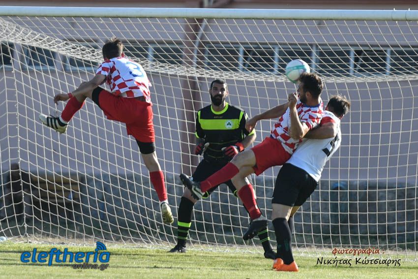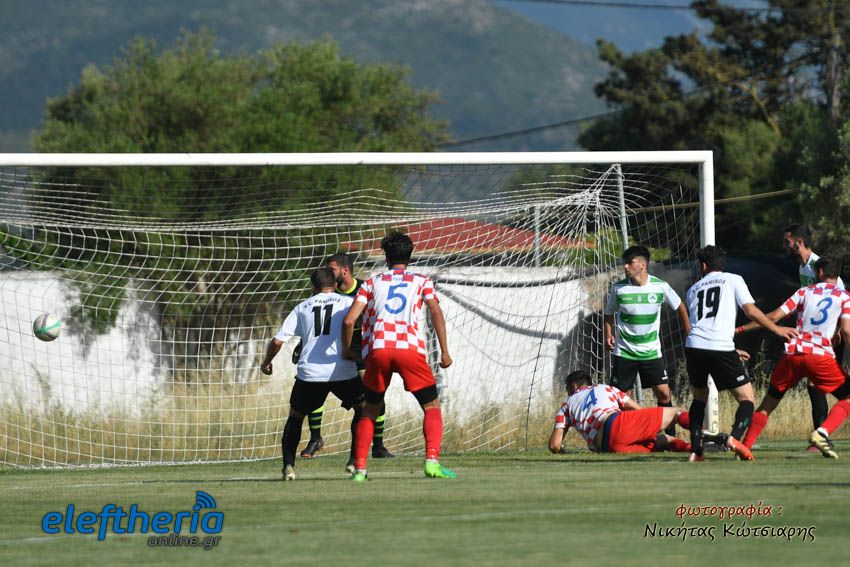 Στο 12’ ο Παπαδόπουλος έκανε τη σέντρα από τα αριστερά στέλνοντας την μπάλα στο πίσω δοκάρι εκεί που κινήθηκε ο Χαραλαμπόπουλος και με κοντινή κεφαλιά “έγραψε” το 1-0. Στο 33’ ο Ντόμας εκτέλεσε κόρνερ και ο Σαρρής που είχε προωθηθεί με διαγώνια κεφαλιά έστειλε την μπάλα στα δίχτυα κάνοντας έτσι το 1-1.