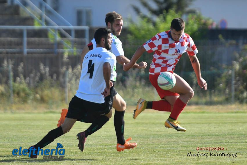Στο 8’ μετά από λάθος των παικτών του Πάμισου, στο χώρο του κέντρου, ο Αλεξανδρής έγινε αποδέκτης μπροστινής μπαλιάς μπήκε στην περιοχή και αφού απέφυγε έναν αντίπαλο του σούταρε συρτά στέλνοντας την μπάλα να κτυπήσει στο κάθετο δοκάρι και να φύγει πλάγια στην απέναντι πλευρά.