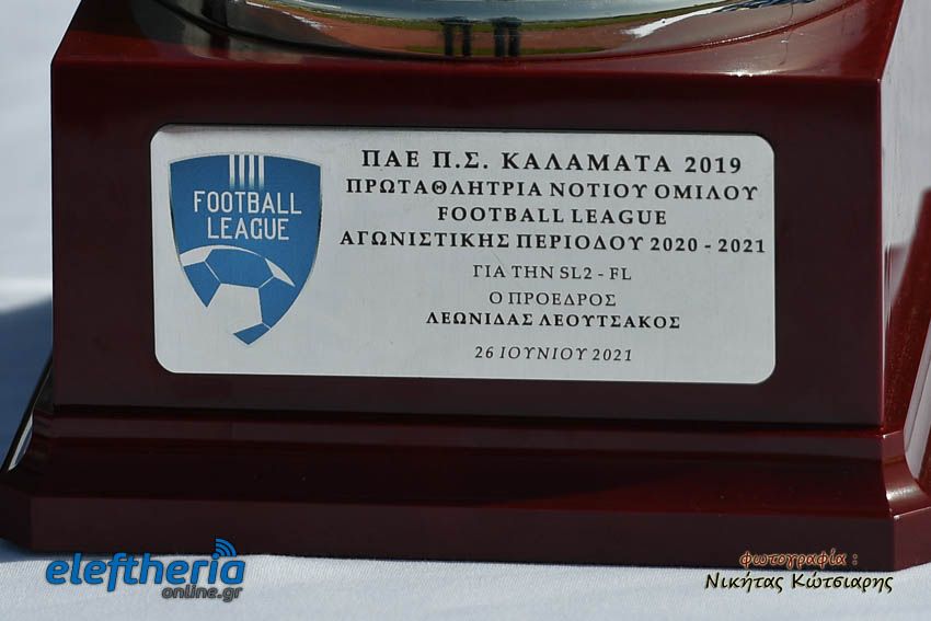 Μετά τη λήξη του αγώνα, ακολούθησε η απονομή, με τους παίκτες να περνούν ένας ένας για να πάρουν τα μετάλλια τους, όπως βέβαια και το τεχνικό τιμ. Ο πρόεδρος της SL2 - FL Λεωνίδας Λεουτσάκος ήταν αυτός που έδωσε το τρόπαιο στον πρόεδρο της Καλαμάτας Γιώργο Πρασσά και αυτός μαζί με τον Γιώργο Ράλλη, το... παρέδωσαν στον αρχηγό Κώστα Ηλιόπουλο που το σήκωσε στον ουρανό και έγινε... ένα με τους υπόλοιπους ποδοσφαιριστές, που αποθεώθηκαν από τον κόσμο.