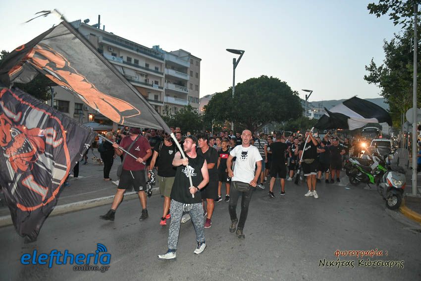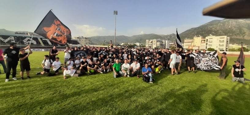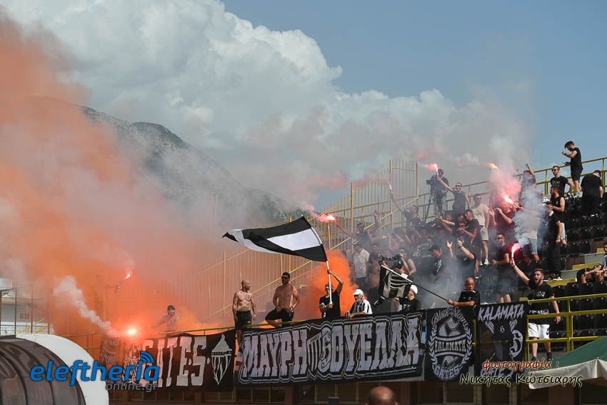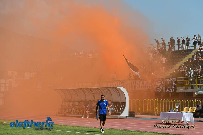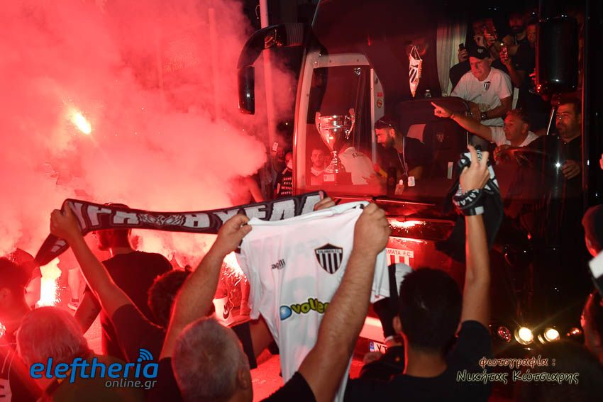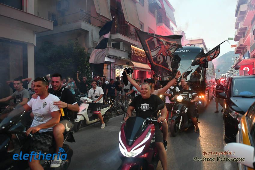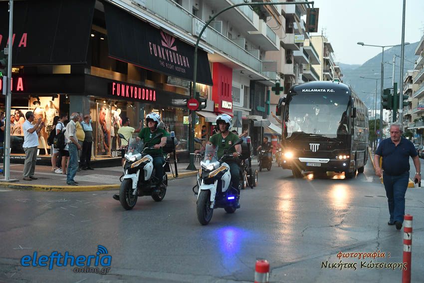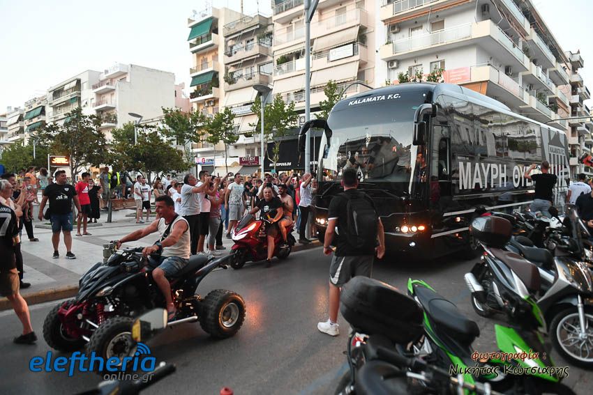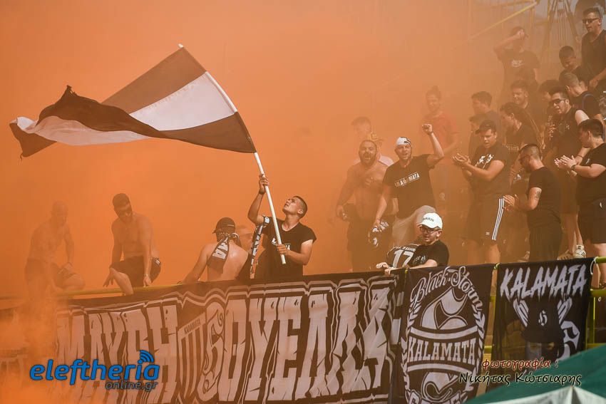 Καπνογόνα, συνθήματα, κορναρίσματα, πανό, σημαίες, συνέθεταν το εντυπωσιακό σκηνικό με τους παίκτες της Καλαμάτας μέσα από το πούλμαν να αποθανατίζουν τις μοναδικές στιγμές. Το πούλμαν αφού έκανε το γύρο της πλατείας, σταμάτησε έξω από τα γραφεία στην Φραντζή, με τη νύχτα να γίνεται... μέρα από τα καπνογόνα. Οι παίκτες ανέβηκαν στα γραφεία και έχοντας το τρόπαιο στα χέρια γνώρισαν την αποθέωση από τον κόσμο που ήταν από κάτω και γιόρταζε τον τίτλο και την άνοδο στη Super League 2.