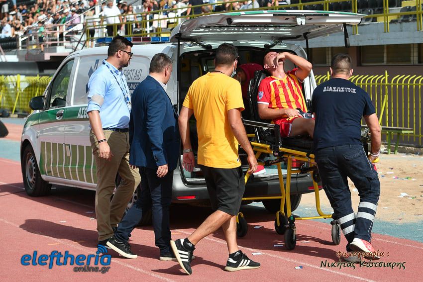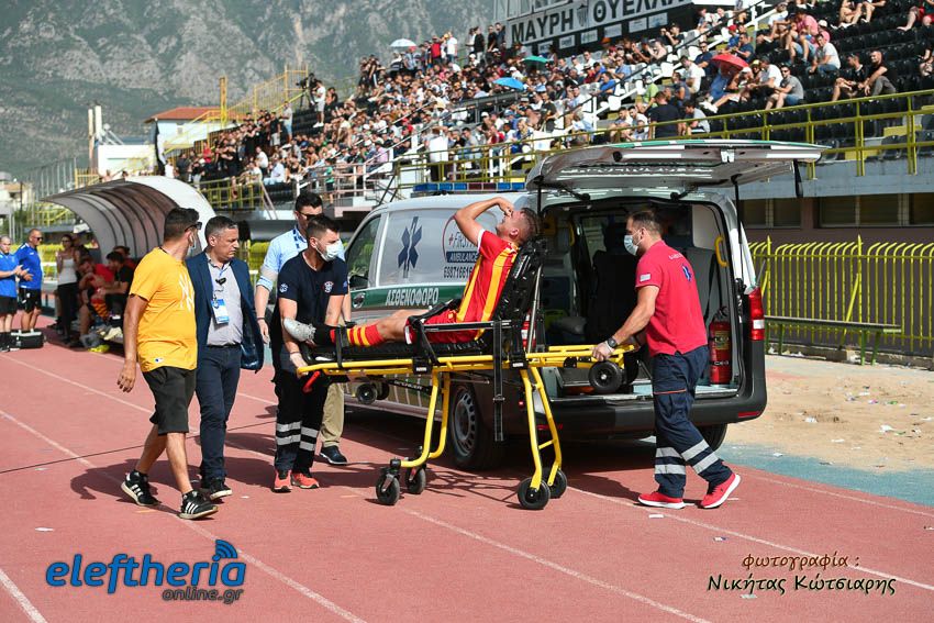 Ο πρώην μέσος της Καλαμάτας χτύπησε μάλιστα σοβαρά στο πόδι και μεταφέρθηκε με ασθενοφόρο στο νοσοκομείο της πόλης.