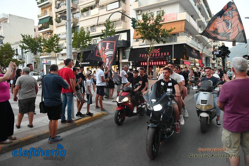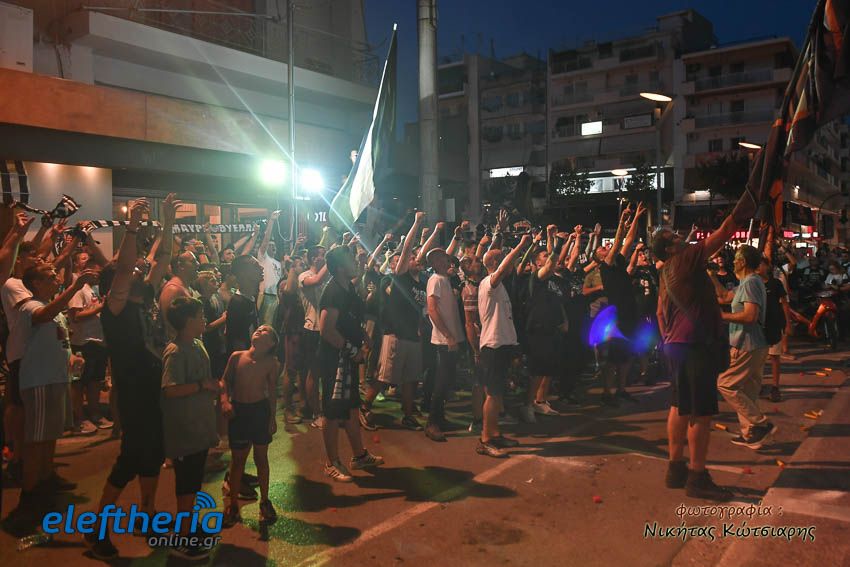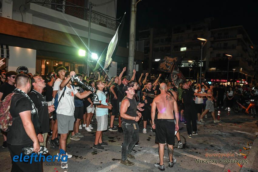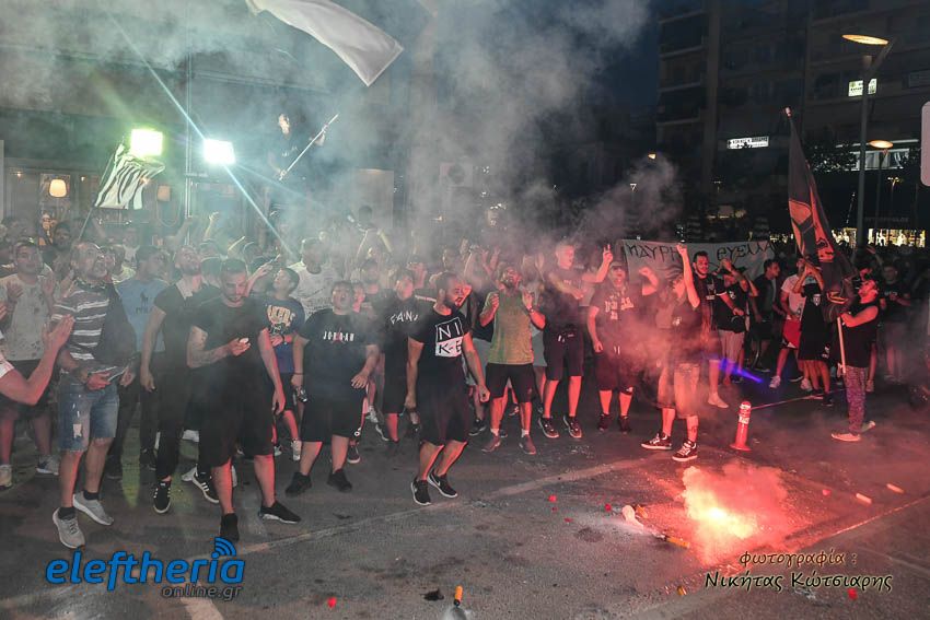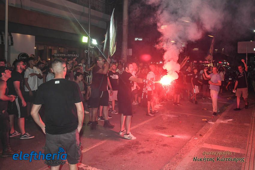 Οι πανηγυρισμοί στο Στάδιο ήταν μόνο η αρχή, καθώς στη συνέχεια ακολούθησε ένα ατελείωτο πάρτι στους δρόμους της πόλης για την κατάκτηση του τίτλου και την άνοδο της "Μαύρης Θύελλας". Μπορεί να μην βρέθηκε ανοιχτό πούλμαν, όπως είχε προαναγγελθεί,, αλλά η χαρά και ο ενθουσιασμός ήταν ίδιος. Το πούλμαν που μετέφερε την αποστολή αναχώρησε μετά τις 8,30 από το Δημοτικό Στάδιο με προορισμό την κεντρική πλατεία της πόλης και τα γραφεία της ομάδας, με εκατοντάδες φιλάθλους να το συνοδεύουν με μηχανές και αυτοκίνητα.