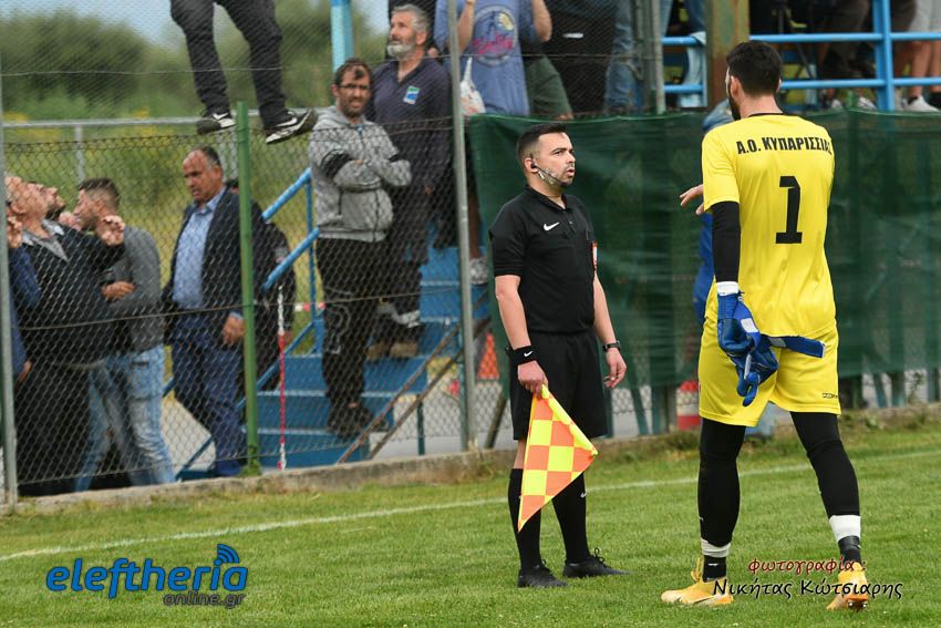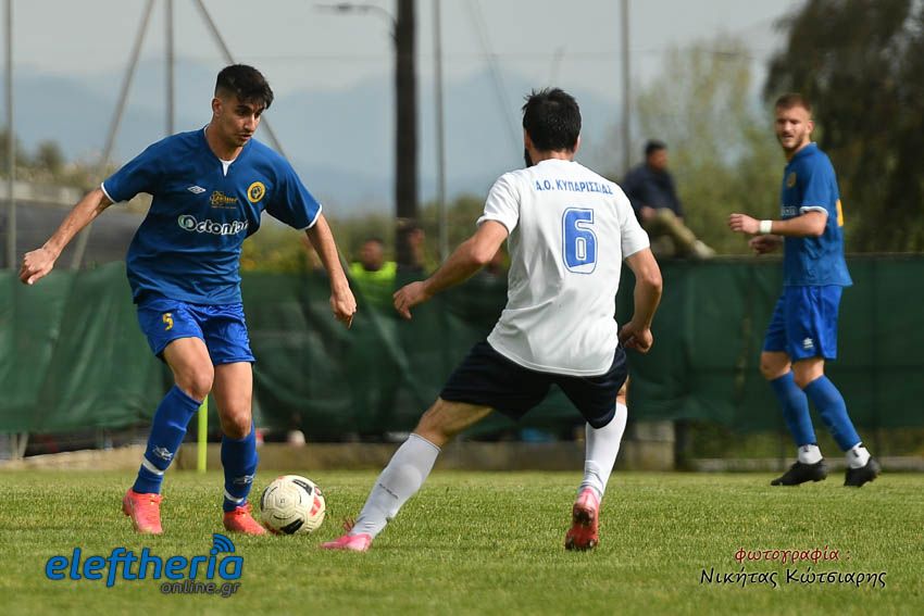 Στο 31’ η Κυπαρισσία είχε μία καλή στιγμή με την γυριστή κεφαλιά του Μαρκόπουλου από το γέμισμα του Σκοτζάι να μπλοκάρει σταθερά ο Κωνσταντακόπουλος.