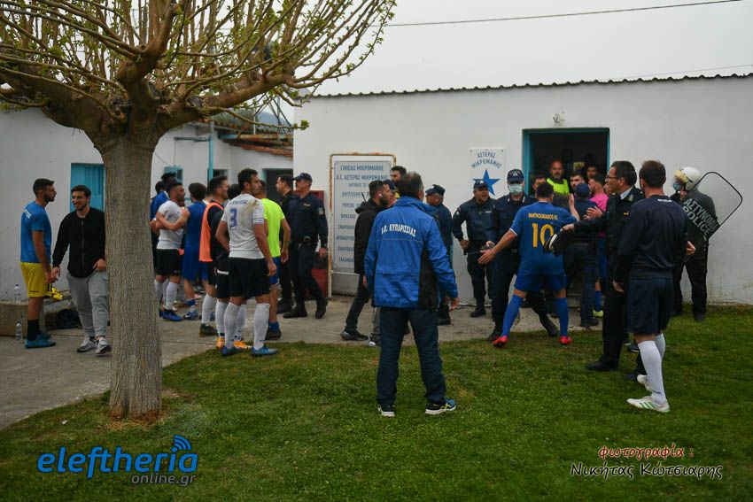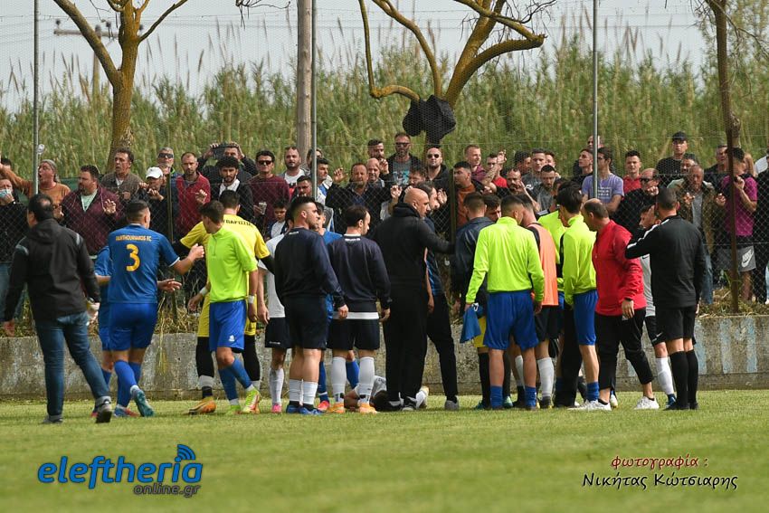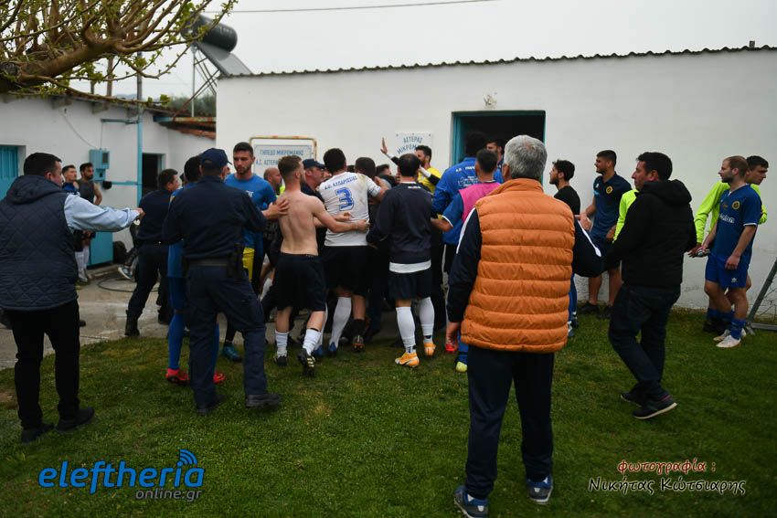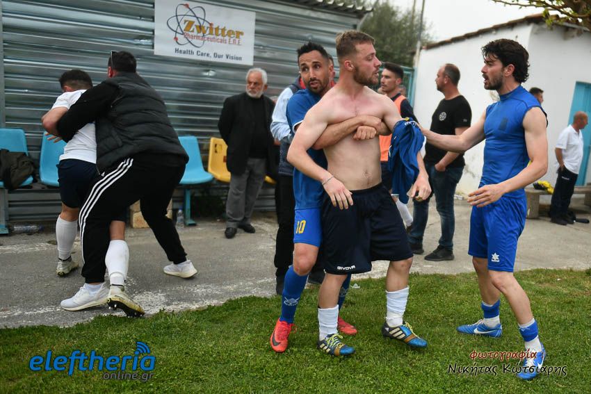 με αποκορύφωμα μετά το τέλος του παιχνιδιού που υπήρξε σύρραξη μεταξύ των παικτών και των παραγόντων των δύο ομάδων έξω από τα αποδυτήρια και έπεσαν αρκετές “ψιλές”.