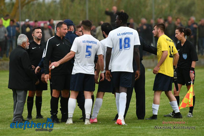 Στο 94’ αποβλήθηκε με απευθείας κόκκινη ο τερματοφύλακας της Κυπαρισσίας Στεφανάκος λόγω έντονης διαμαρτυρίας προς τον διαιτητή Καυκά, για φάουλ που του χρέωσε σε ένα κόρνερ που είχε ανέβει στην περιοχή του Πανθουριακού.