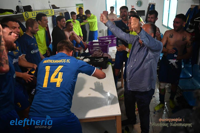 Μετά το τέλος του αγώνα οι παίκτες, το τεχνικό τιμ και οι παράγοντες του Πανθουριακού πανηγύρισαν με την ψυχή τους την κατάκτηση του πρωταθλήματος. Επίκεντρο των πανηγυρισμών ήταν ο πρόεδρος της ομάδας Αγαθοκλής Χριστόπουλος που συγκινημένος, μοίραζε συγχαρητήρια στους παίκτες. Πρόκειται για μία δικαίωση για τον κ. Χριστόπουλο που έχει μοχθήσει πολύ τα τελευταία χρόνια, έχει “ματώσει” οικονομικά και είδε οι κόποι του να ανταμείβονται με την κατάκτηση του τίτλου.