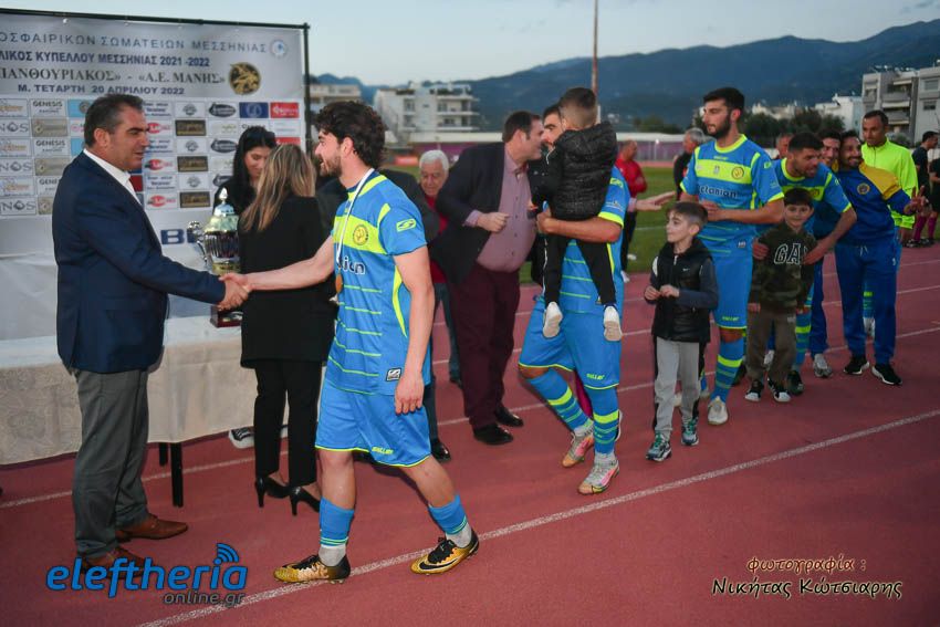 Ο Πανθουριακός κατέκτησε χθες το πρώτο Κύπελλο Μεσσηνίας στην ιστορία του, νικώντας με 2-1 την Α.Ε. Μάνης στον τελικό.