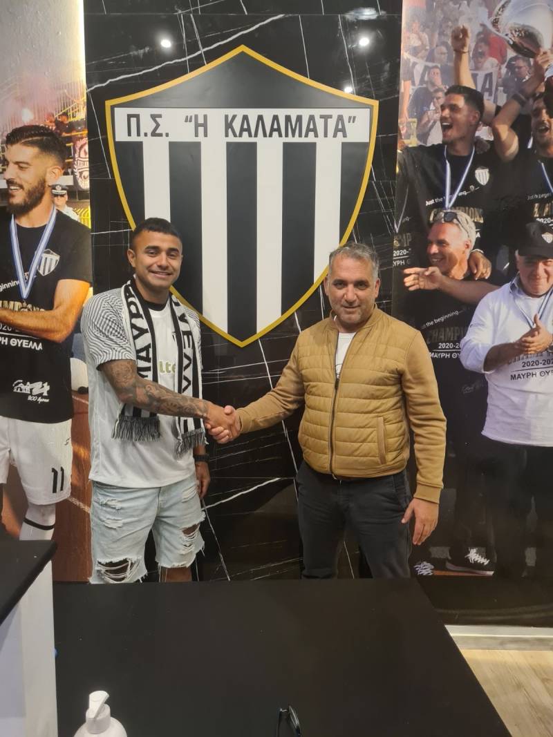 Ο Αργεντινός βρέθηκε χθες το πρωί στα γραφεία της μεσσηνιακής ΠΑΕ και υπέγραψε διετές συμβόλαιο (στη φωτό με τον εκτελεστικό διευθυντή της ΠΑΕ Βασίλη Παναγιωτόπουλο), επιβεβαιώνοντας το ρεπορτάζ της "Ε" για συμφωνία της Καλαμάτας με τον Μπενίτεζ, αλλά και με τον Μεσιδόρο, επίσης Αργεντίνο ποδοσφαιριστή της Ιεράπετρας, που αναμένεται να υπογράψει το επόμενο διάστημα.