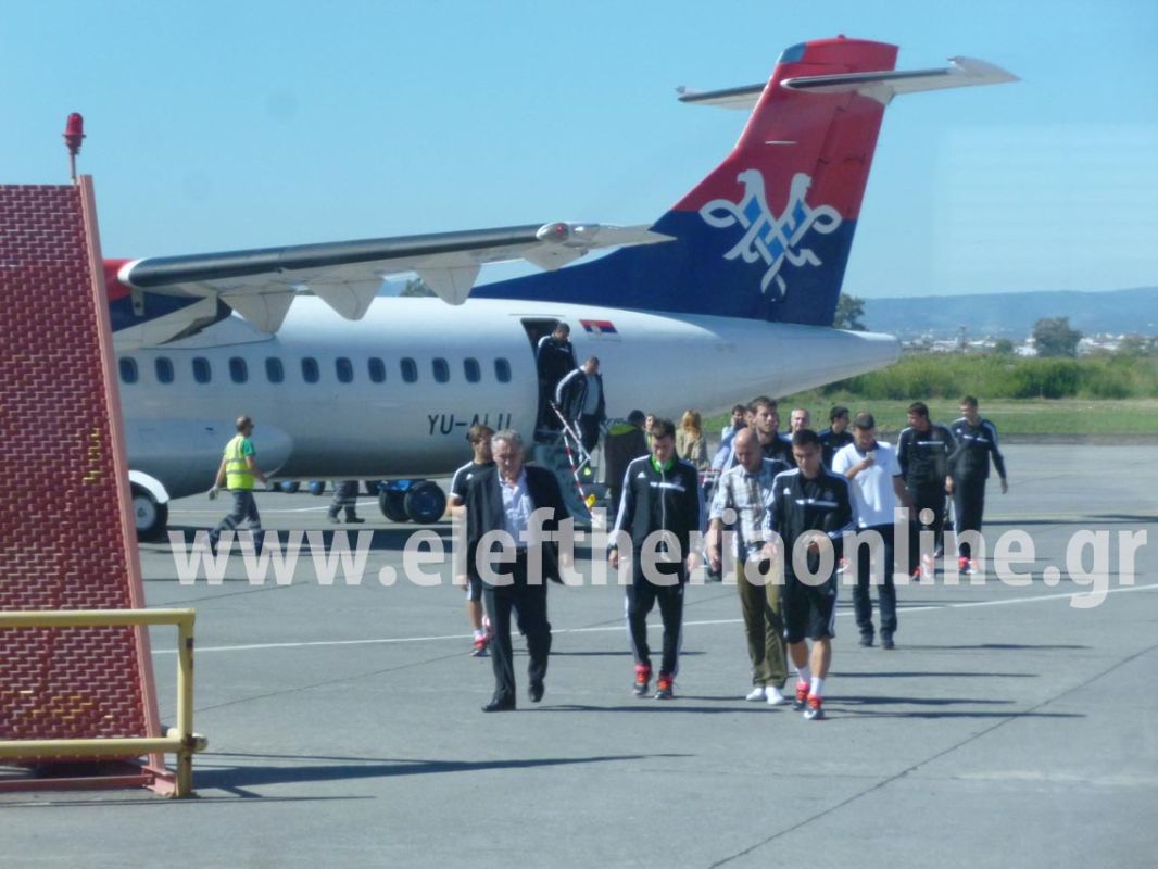 Στο αεροδρόμιο "Καπετάν Βασίλης Κωνσταντακόπουλος" προσγειώθηκε σήμερα λίγο πριν τις 12 το μεσημέρι η αποστολή της Παρτιζάν, όπου αύριο αντιμετωπίζει τον Αστέρα Τρίπολης για τη 2η αγωνιστική των ομίλων του Europa League.