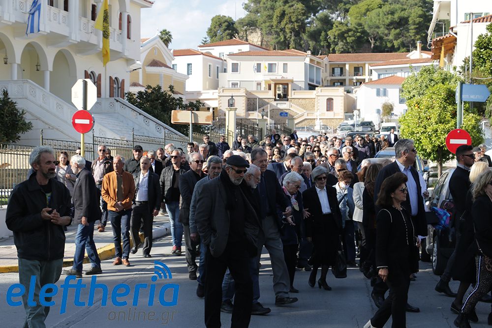 Επικήδειους εκφώνησαν η εγγονή του Μαριούζα Μπουφέα, ο επιστήθιος φίλος του Σάκης Λέφας και η αντιπεριφερειάρχης Τουρισμού Αννα Καλογεροπούλου, που υπήρξε συνεργάτιδα του εκλιπόντος.