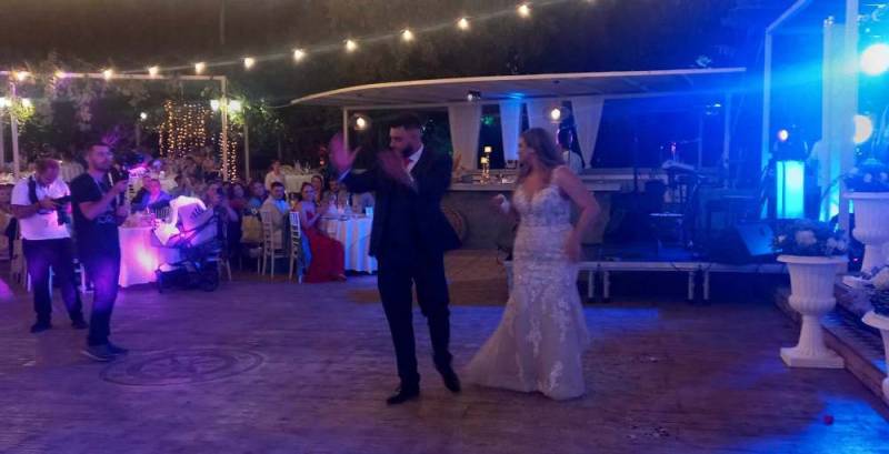 Ακολούθησε δεξίωση στο "Κτήμα Αλεξόπουλου" στη Χώρα, όπου το ζευγάρι έκανε θεαματική είσοδο υπό τους ήχους του ύμνου του Ολυμπιακού, μιας και ο Ηλίας Σαρρής είναι γνωστός για τα "ερυθρόλευκα" αισθήματά του! Μάλιστα φίλοι του γαμπρού άναψαν αρκετά καπνογόνα, μετατρέποντας το κέντρο σε... "Καραϊσκάκη"!