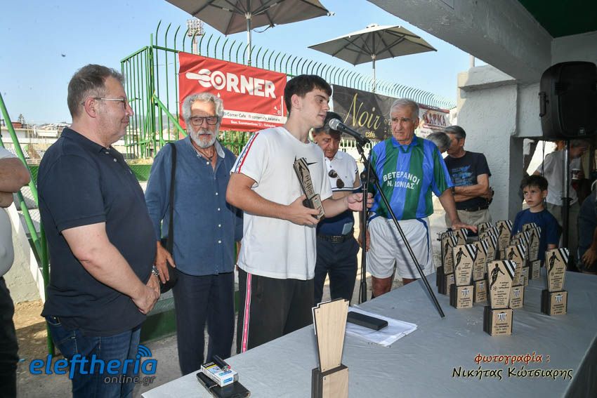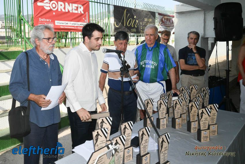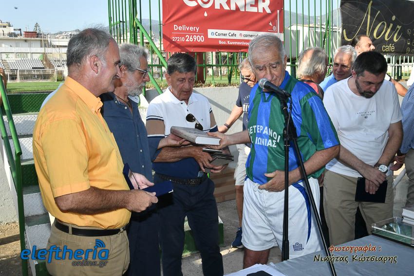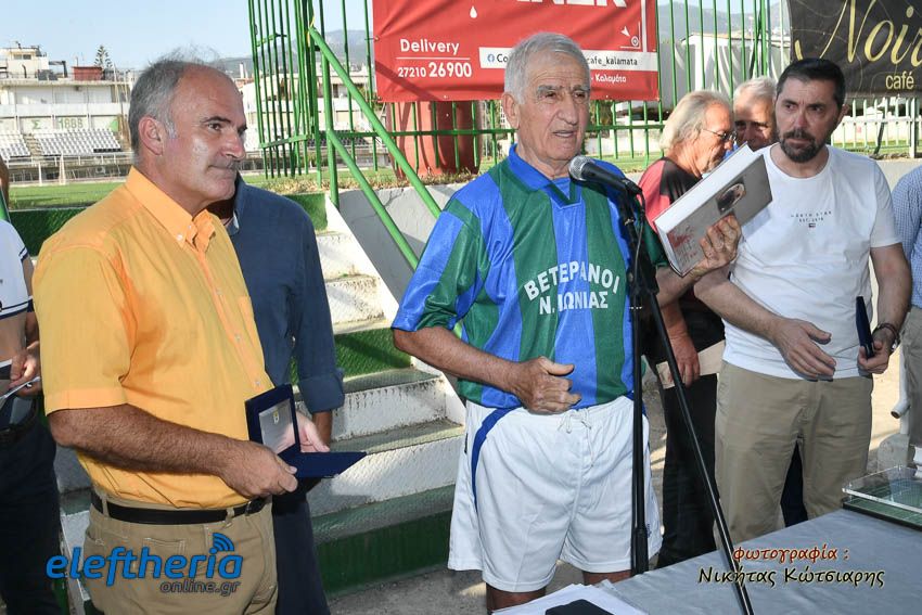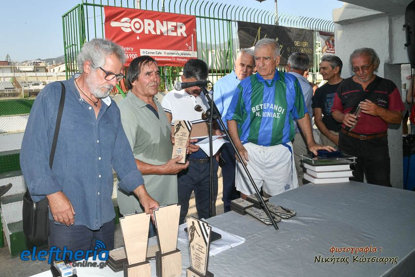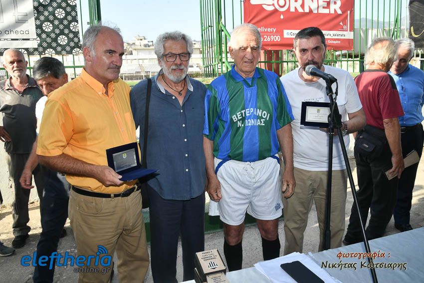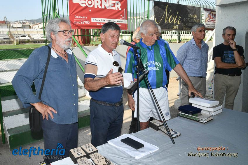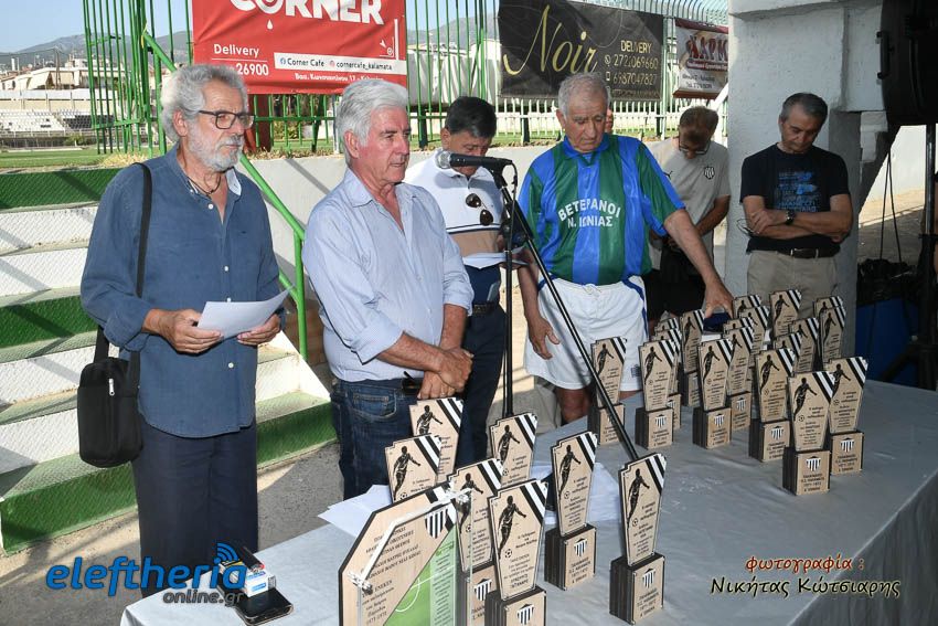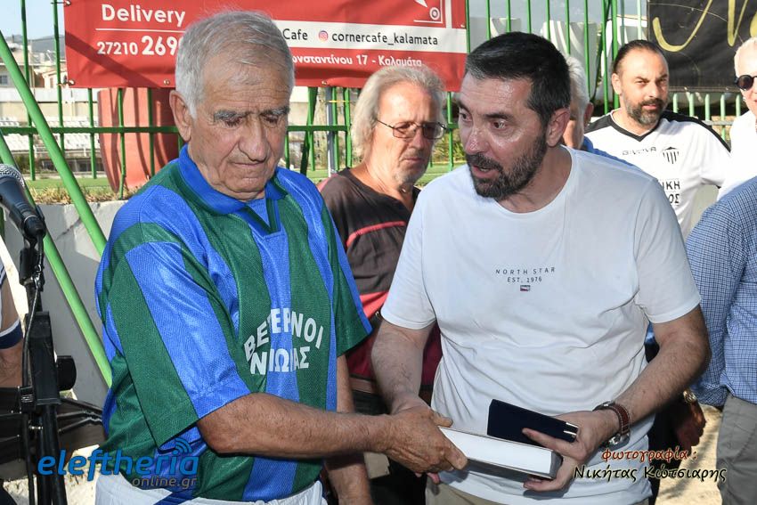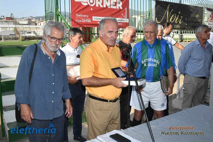 Από την πλευρά του ο Σύλλογος Βετεράνων Ποδοσφαιριστών Νέας Ιωνίας βράβευσε δύο δημοσιογράφους που καλύπτουν το ρεπορτάζ του συγκεκριμένου φιλικού αγώνα εδώ και πάρα πολλά χρόνια. Συγκεκριμένα από την εφημερίδα “Θάρρος” βραβεύθηκε ο Βαγγέλης Χουντάλος και από την εφημερίδα “Ελευθέρια” ο Παναγιώτης Πρεζεράκος. Τις δύο αυτές βραβεύσεις έκανε ο επικεφαλής των βετεράνων της Ν. Ιωνίας Γιώργος Ουσταμπασίδης, ο οποίος εκτός από τις τιμητικές πλακέτες προσέφερε και από ένα βιβλίο για τη Γενοκτονία των Ελλήνων του Πόντου, ενώ το ίδιο βιβλίο προσέφερε και στον πρόεδρο των παλαιμάχων της Καλαμάτας Μανώλης Θεοδώρου.