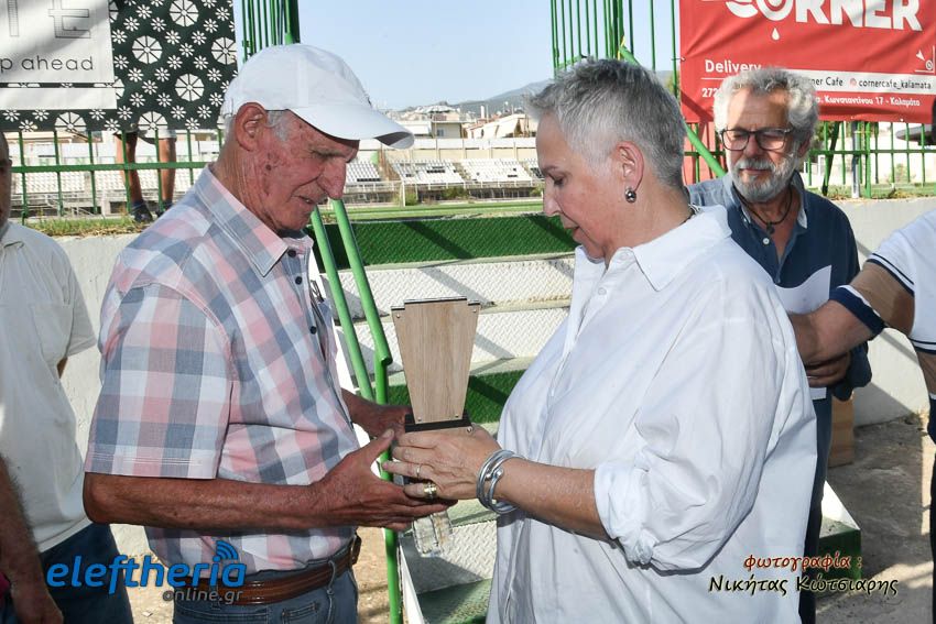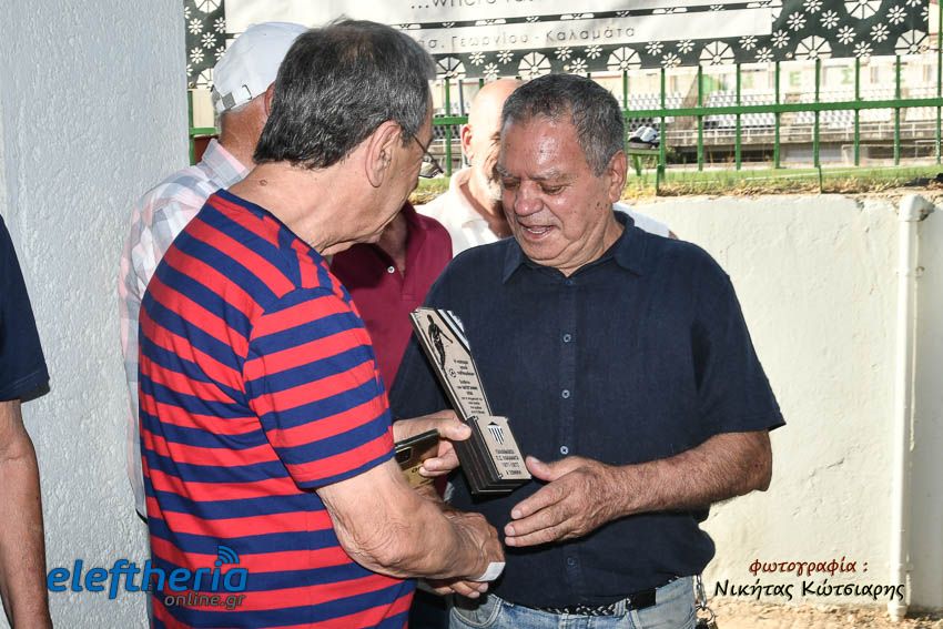 Πριν από τη διεξαγωγή του φιλικού, που φέτος συμπληρώνονται 52 χρόνια από τη διεξαγωγή του ιστορικού παιχνιδιού το 1972 στο γήπεδο της Νέας Φιλαδέλφειας, έγινε η βράβευση όλων των παλαιμάχων του 1972, σε μια συγκινητική εκδήλωση που οργάνωσε η επόμενη γενιά παλαιμάχων από αυτή της ανόδου και την παρουσίαση της έκανε ο γενικός γραμματέας του συλλόγου παλαιμάχων ποδοσφαιριστών του Π.Σ. “Καλαμάτα” Κώστας Παρασκευόπουλος.