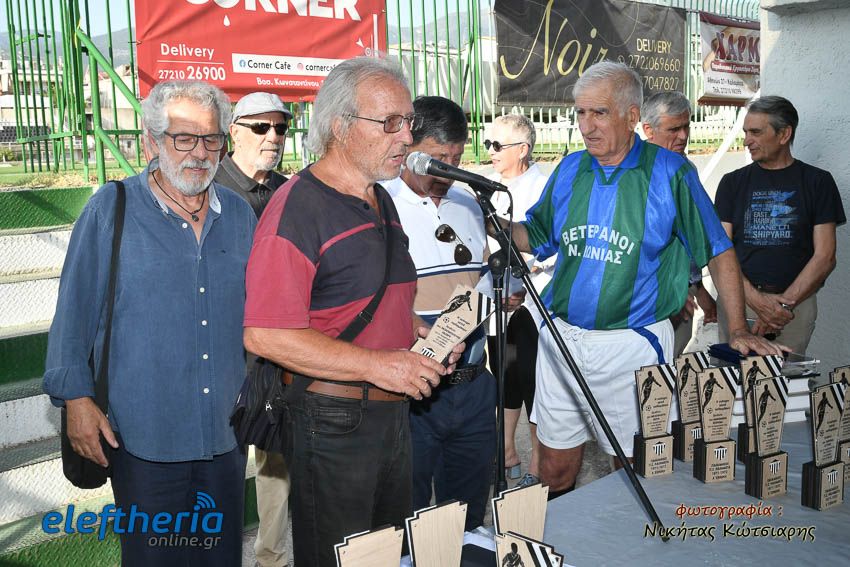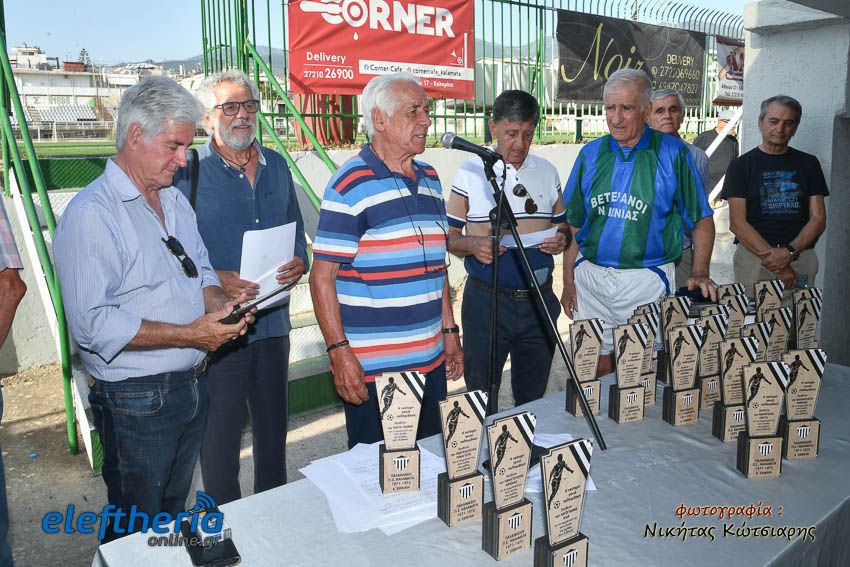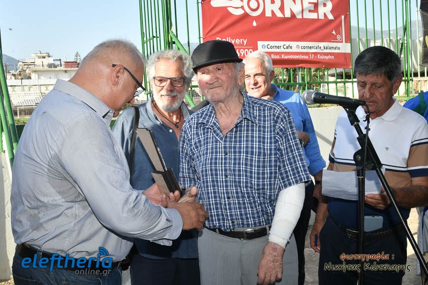 Οι παλαίμαχοι ποδοσφαιριστές που βραβεύθηκαν ήταν οι Νικήτας Παπανικολόπουλος, Φώτης Μελιγαλιώτης, Παναγιώτης Μάραντος, Άγγελος Σκαφιδάς, Λάζαρος Λαζαρακόπουλος, Νίκος Μουλατσιώτης, Μανώλης Θεοδώρου, Λεωνίδας Δαμιανάκος, Βασίλης Γεωργόπουλος, Δημήτρης Σπεντζόπουλος, Κώστας Καλαϊντζίδης, Στέφανος Αργυρόπουλος, Γιάννης Σταυριανέας, Παναγιώτης Σταυριανέας, Γιώργος Ζήσης, Δημήτρης Ασημακόπουλος, Χρήστος Μασουρίδης, Ευθύμιος Πετρομιχελής και οι Ηλίας Λαγογιάννης, Γιάννης Χιώτης, Παναγιώτης Παντελόπουλος, Νίκος Παναγόπουλος, οι οποίοι έχουν φύγει από τη ζωή. Τις τιμητικές πλακέτες σε όσους παλαίμαχους δεν μπόρεσαν να παρευρεθούν τις παρέλαβαν συγγενείς, όπως και αυτές των παλαιμάχων που έχουν φύγει από τη ζωή.