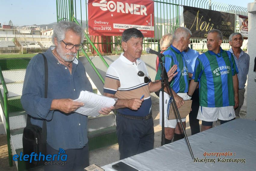 Για την ομάδα των Βετεράνων Νέας Ιωνίας στην αρχική 11άδα αγωνίστηκαν οι Κώστας Ανδρουτσόπουλος, Γιώργος Σταυρόπουλος, Γιώργος Λούβαρης, Γιώργος Κωτσοβός, Ευγένιος Βασίλεφ, Γκάμπι Πάπα, Δημήτρης Μαχάς, Μαρίνος Ζουβερελής, Λάμπρος Γεωργούλιος, Χρήστος Στυλιανού, Γιώργος Ουσταμπασίδης. Επαιξαν ακόμη Βασίλης Χότζα, Κώστας Χαλέμος, Κώστας Ελευθεριάδης, Λεωνίδας Μούργος.
