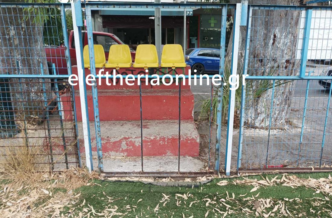 Πέρα από τη χαλασμένη σε αρκετά σημεία περίφραξη, τα τρύπια δίχτυα και τις ζημιές στους πάγκους, η βλάστηση έχει μπει μέσα στο γήπεδο, ενώ σε άλλη περίπτωση η πρόσβαση σε αυτό είναι αδύνατη.