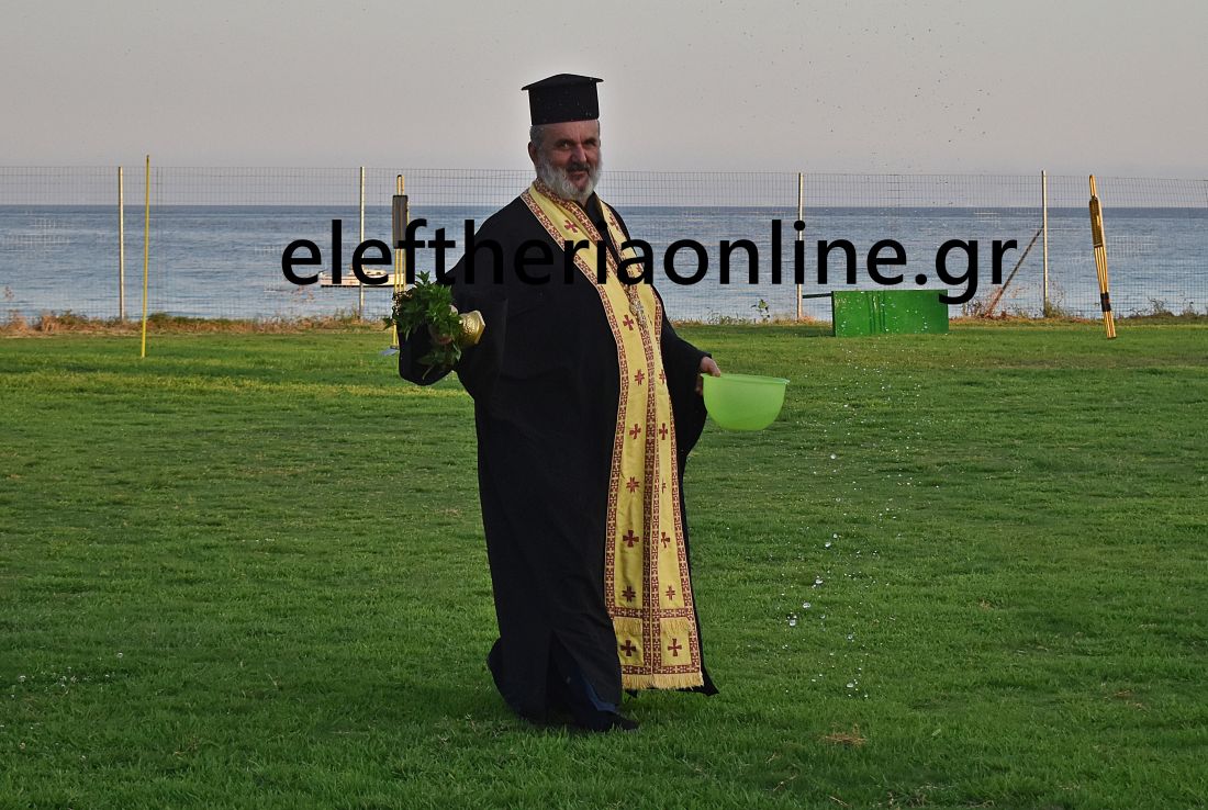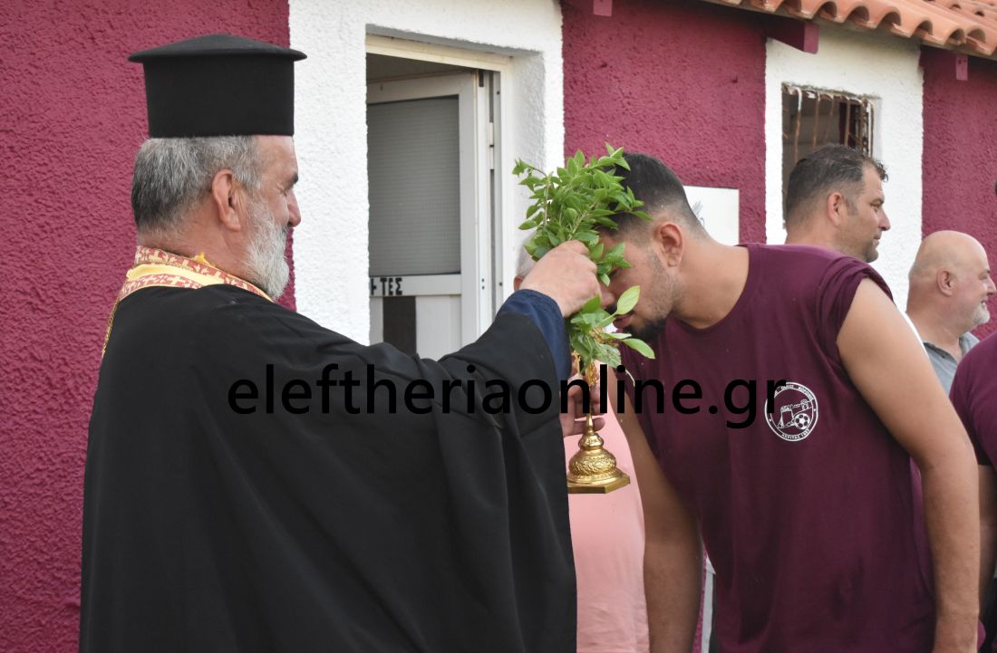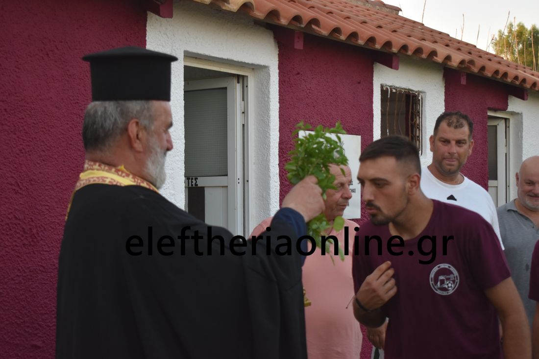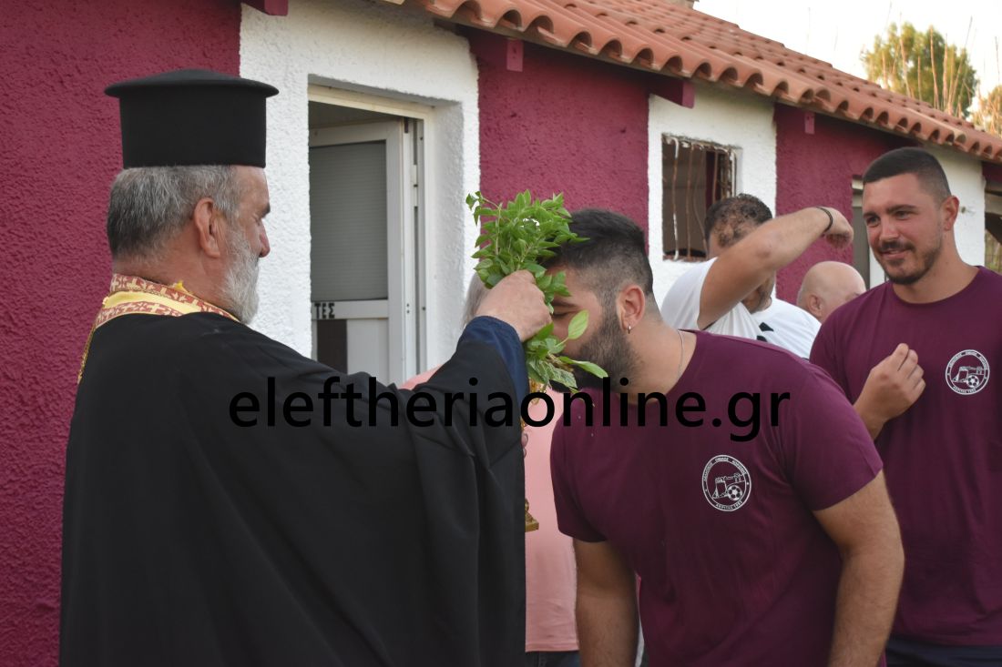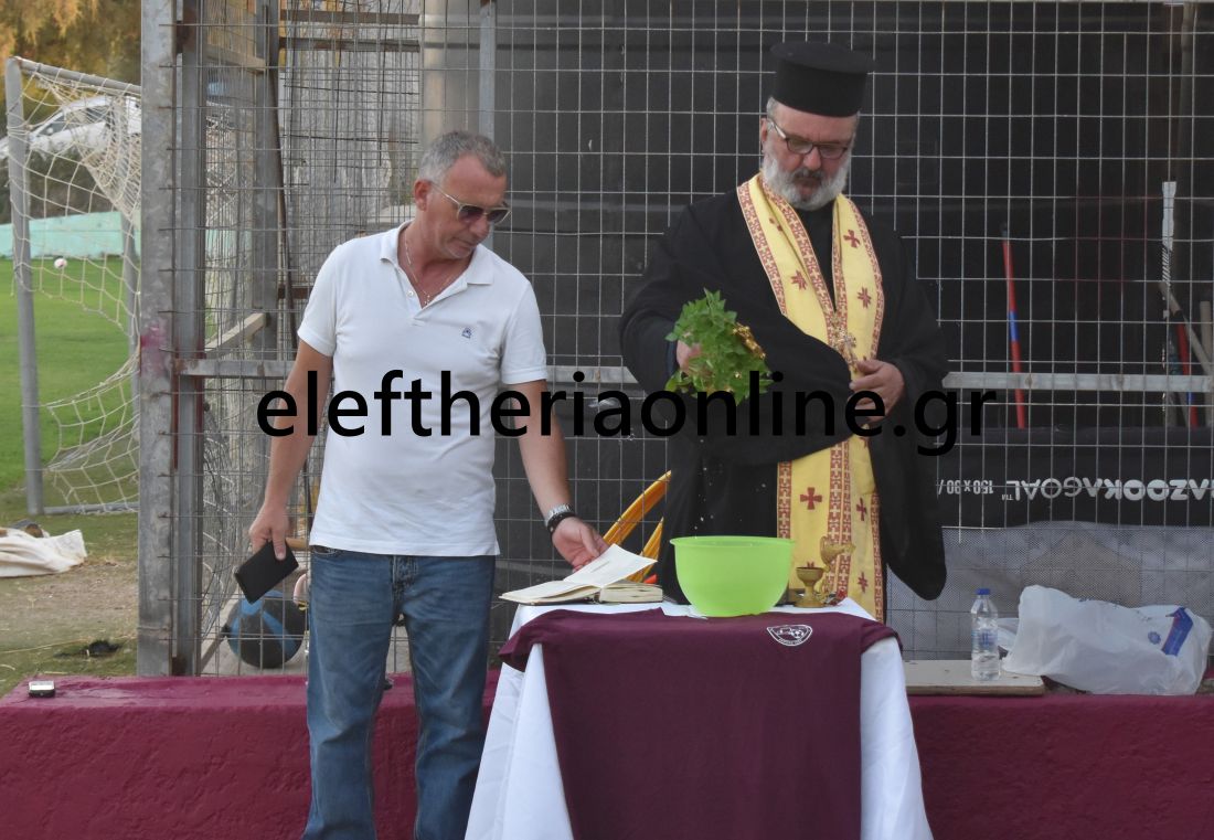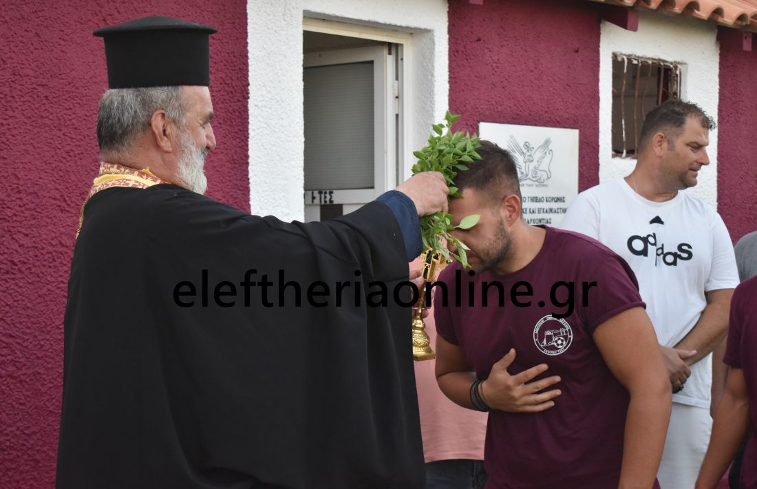 Τον αγιασμό τέλεσε ο πάτερ Φώτιος Τσιριγώτης, δίνοντας τις ευχές για μια καλή ποδοσφαιρική χρονιά χωρίς τραυματισμούς.