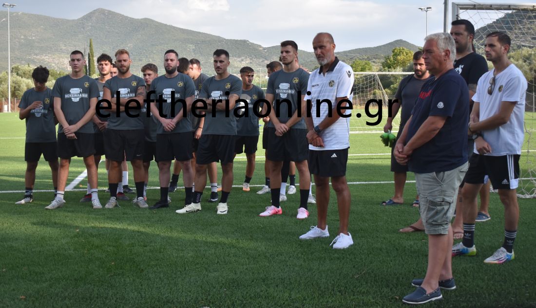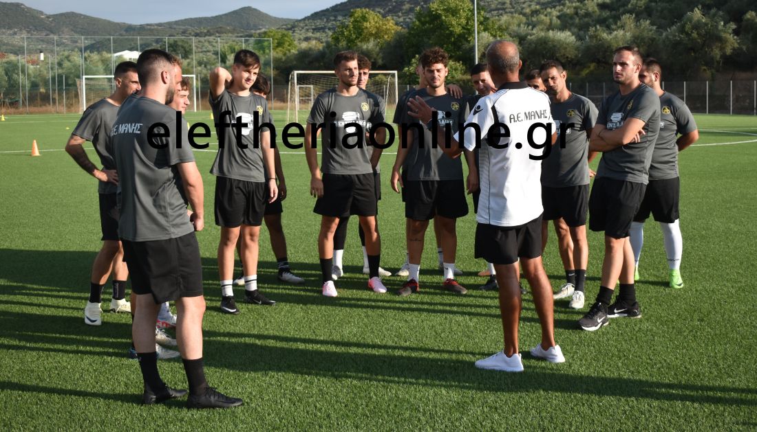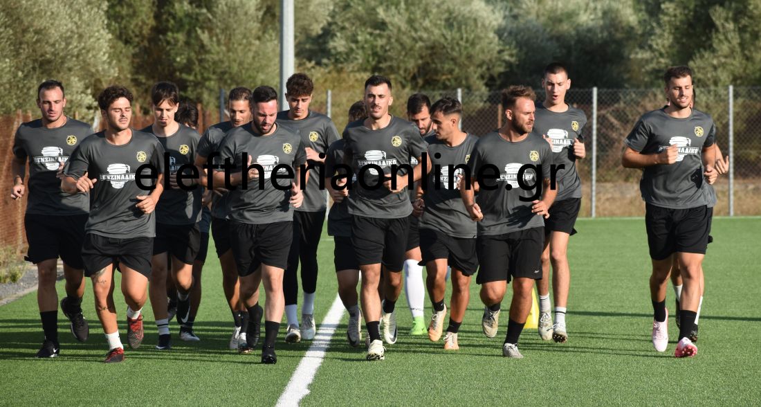 Το “παρών” στην πρώτη προπόνηση έδωσαν 14 ποδοσφαιριστές. Οι “παλιοί”, Γιώργος Χατζηπαναγιώτης, Παναγιώτης Πουλάκος, Κυριάκος Πουλάκος, Δημήτρης Κουρούπης, Κυριάκος Γλέζος, Λυκούργος Εξαρχάκος, Γιώργος Μουλιάτος, Γιώργος Σπυρόπουλος, Σεμπαστιάν Ντερβίσι, Κωνσταντίνος Δημητρουλέας, Αζίζ Χύσα τα νέα μεταγραφικά αποκτήματα, Ηλίας Πολίμος, Φώτης Πλιός και ο Βαγγέλης Τσιλιμπέρδης, ο οποίος επέστρεψε από τον δανεισμό του στην ΑΕ Αβίας.