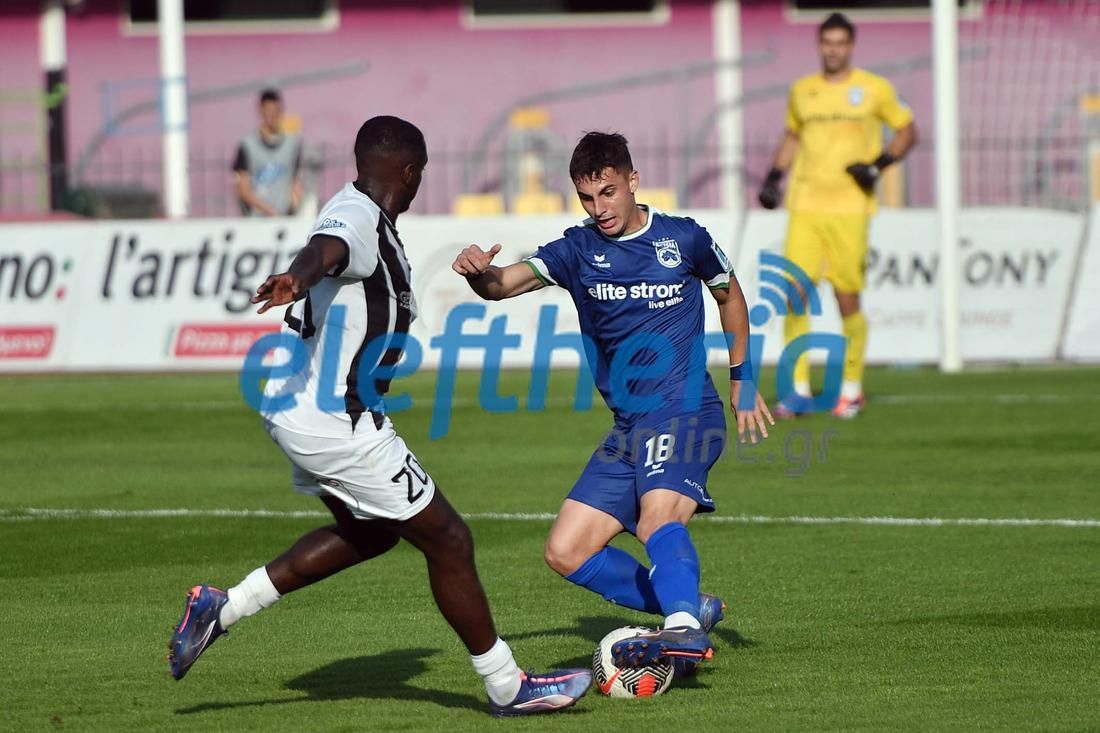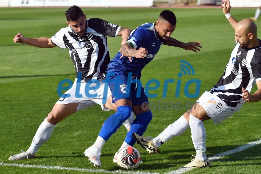 Στο 40’ η Καλαμάτα άγγιξε το 2-1 με το δυνατό σουτ του Μόρσεϊ να σταματά στο οριζόντιο δοκάρι.