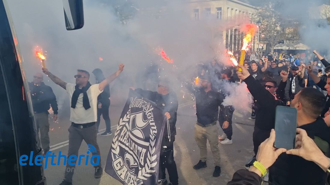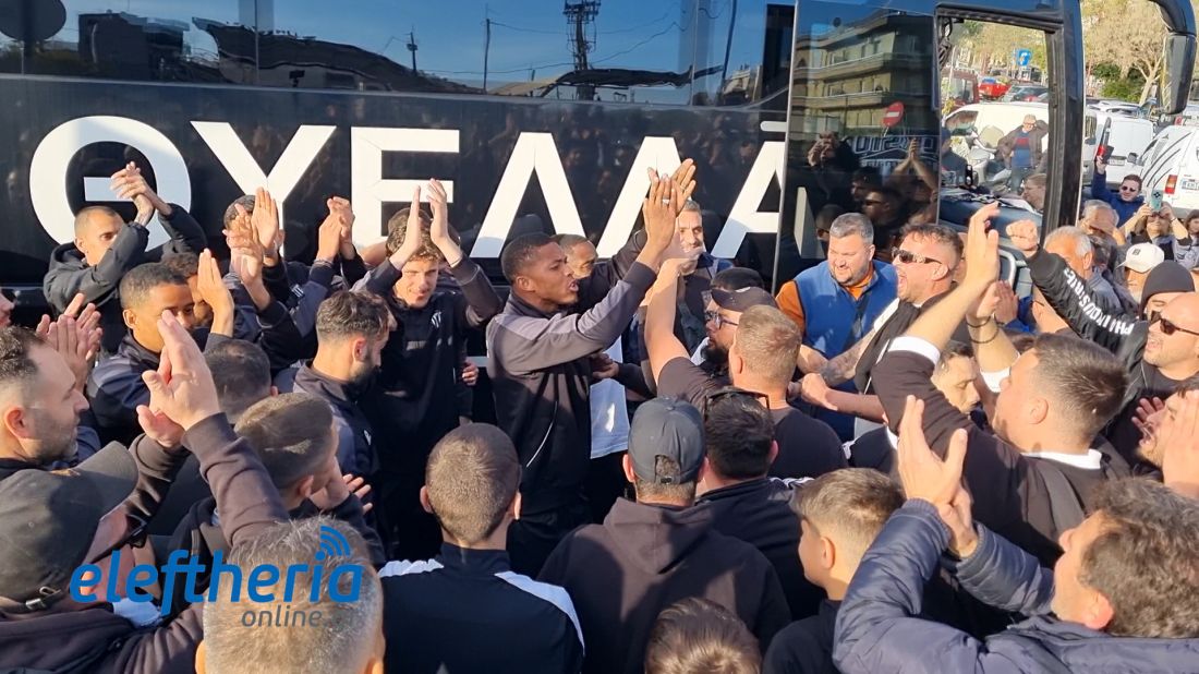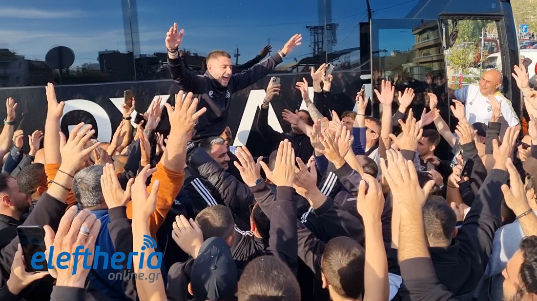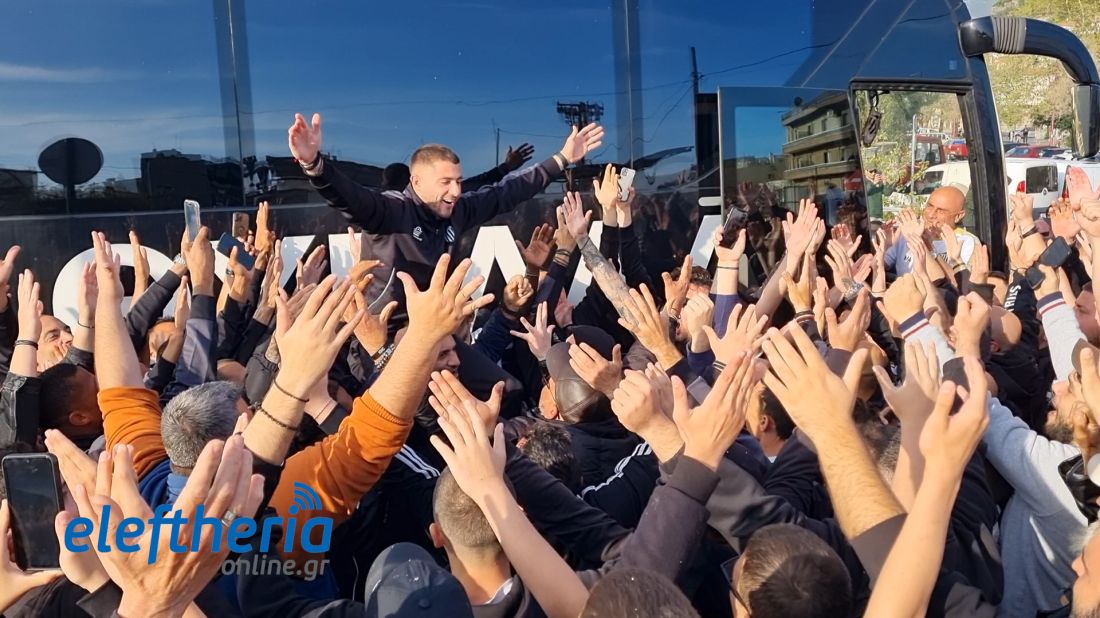 Λίγο μετά τις 6 το απόγευμα εκατοντάδες φίλαθλοι περίμεναν το πούλμαν της ομάδας στην πλατεία Οθωνος και με την άφιξη της αποστολής η περιοχή μετατράπηκε σε... εξέδρα.