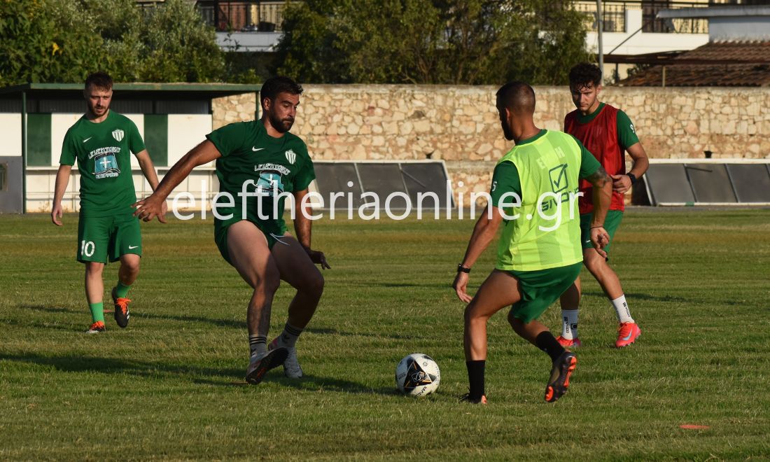Αμέσως μετά, μοιράστηκε το αθλητικό υλικό και ακολούθησε η πρώτη προπόνηση στο παλιό γήπεδο Φιλιατρών υπό τις οδηγίες του ίδιου και του άμεσου συνεργάτη του, Γιάννη Αντωνόπουλου. Το παρών έδωσε επίσης ο τεχνικός διευθυντής Δημήτρης Πλατάνας, καθώς και κάποια μέλη της διοίκησης.