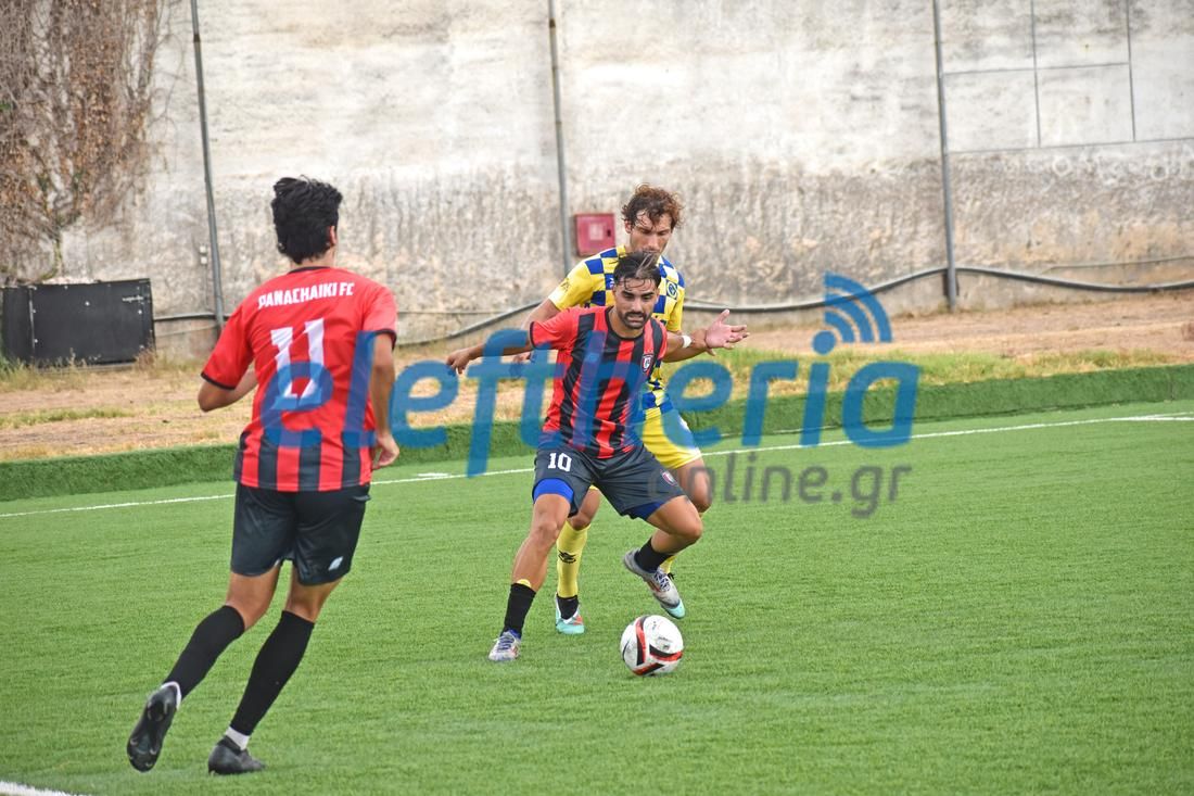 Οι γηπεδούχοι ευτύχησαν να προηγηθούν στην πρώτη καλή στιγμή του ματς στο 19’, όταν από κάθετη πάσα του Αριστομενόπουλου, ο Αγγελής μπήκε στην περιοχή και πλάσαρε στην κλειστή γωνία του γκολκίπερ της Παναχαϊκής για το 1-0.