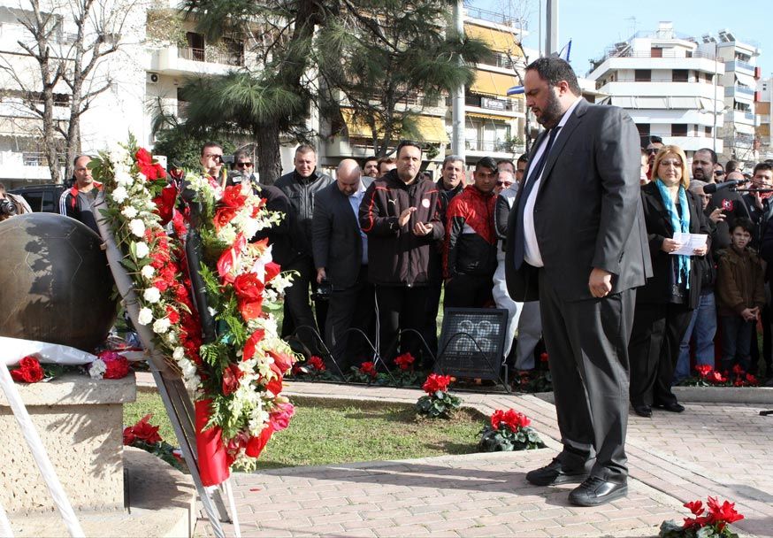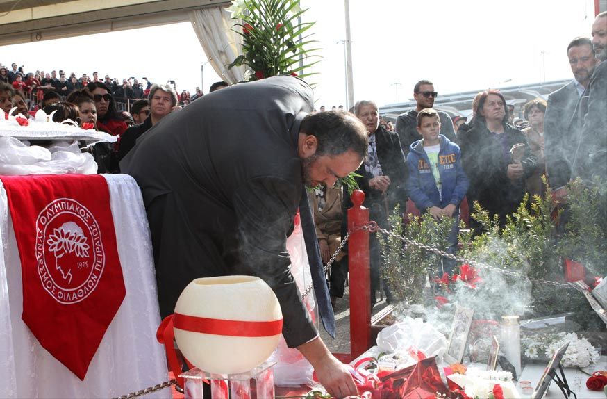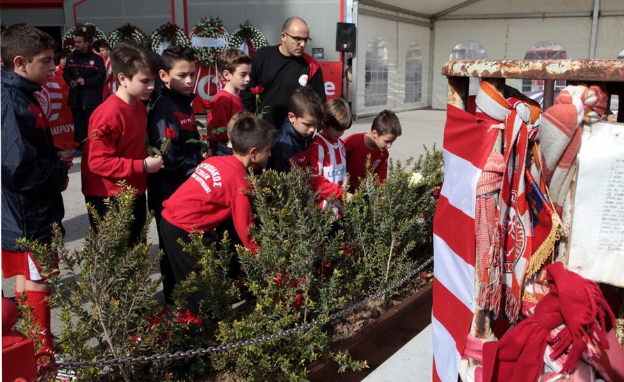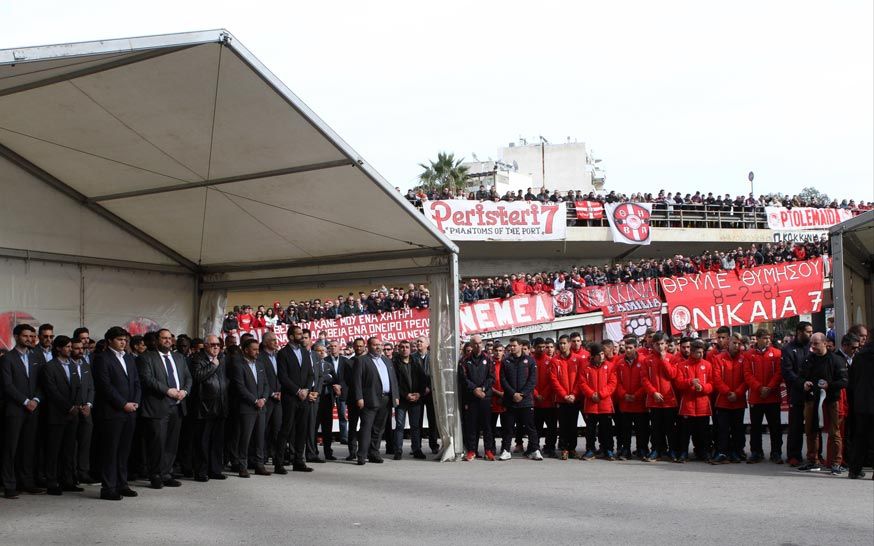Σαν αύριο συμπληρώνονται 34 χρόνια από την τραγωδία που έπληξε την «ερυθρόλευκη» οικογένεια, όμως η τελετή πραγματοποιήθηκε σήμερα γιατί η πειραϊκή ομάδα παίζει εκτός έδρας αντιμετωπίζοντας τον ΠΑΟΚ το βράδυ της Κυριακής.