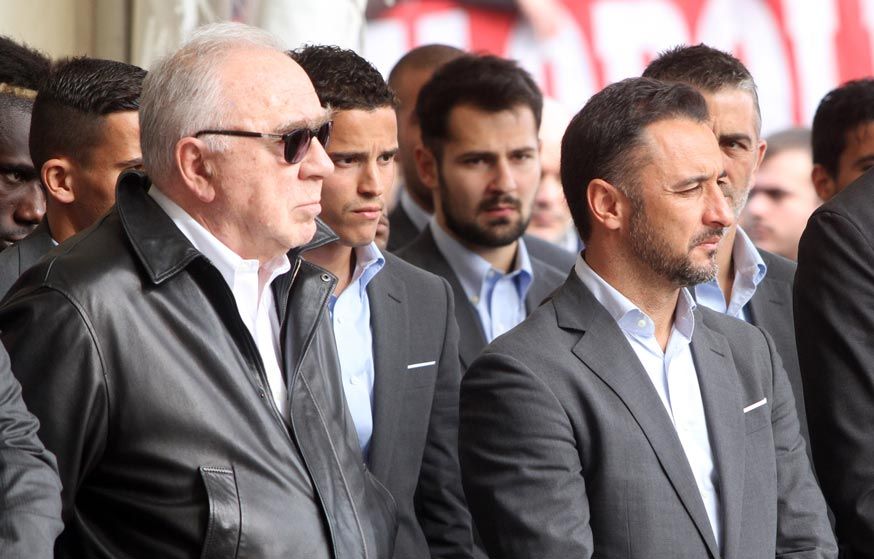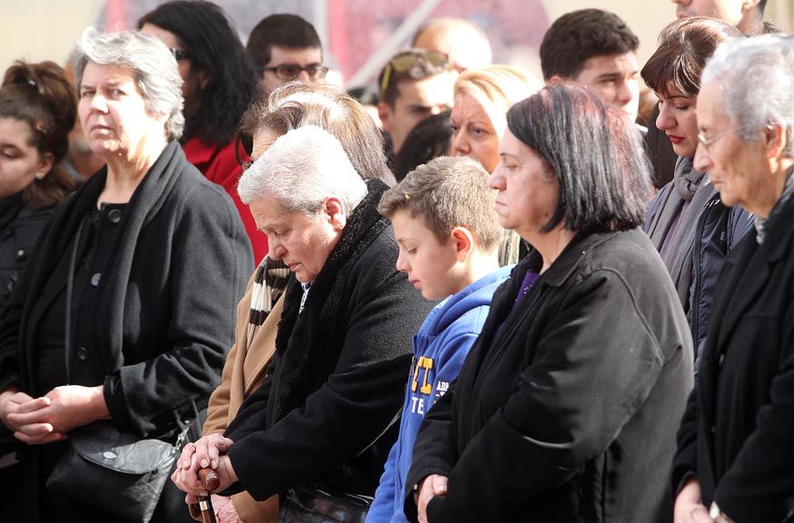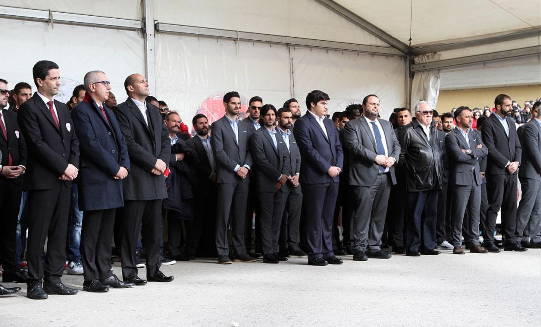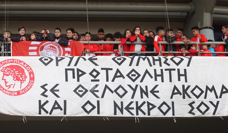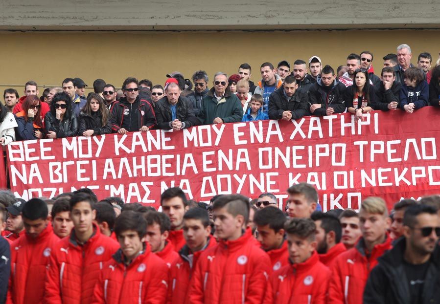 Οι παρευρισκόμενοι ζήτησαν από τον Βίτορ Περέιρα και τους ποδοσφαιριστές του το «διπλό» στη Θεσσαλονίκη, ενώ το βράδυ οι φίλαθλοι του Ολυμπιακού θα βρεθούν στις εξέδρες του «Γ. Καραϊσκάκης» για να τιμήσουν τα 21 αδικοχαμένα παιδιά.