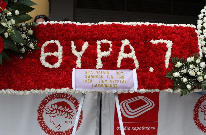 Πραγματοποιήθηκε το μεσημέρι στο «Γ. Καραϊσκάκης» το ετήσιο μνημόσυνο για τα 21 θύματα της «Θύρας 7», που έχασαν τη ζωή τους στις 8 Φεβρουαρίου 1981, μετά τη λήξη του ντέρμπι με την ΑΕΚ.