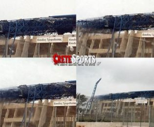 Πριν από περίπου έναν μήνα το Παγκρήτιο Στάδιο χτυπήθηκε από την κακοκαιρία που είχε ως αποτέλεσμα να ξηλωθεί μέρος του στεγάστρου στην Θύρα 3.