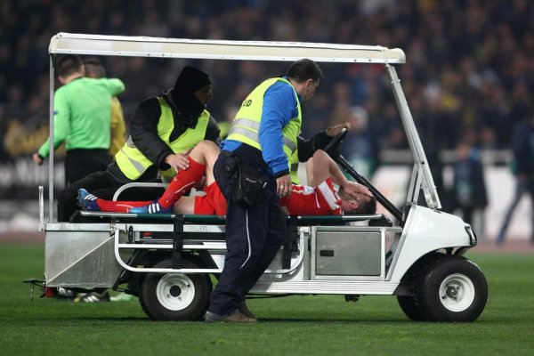 Με το ξεκίνημα του β' ημιχρόνου αποχώρησε τραυματίας ο αρχηγός της ομάδας του Πειραιά και οι πρώτες εκτιμήσεις κάνουν λόγο για σοβαρή ζημιά. Σύμφωνα με αυτές ο διεθνής άσος έχει υποστεί ρήξη πρόσθιου χιαστού, κατά τη διάρκεια διεκδίκησης της μπάλας με τον Βαγγέλης Πλατέλλα. Αν επιβεβαιωθούν οι εκτιμήσεις αυτές, τότε ο αρχηγός των «ερυθρόλευκων» υπολογίζεται ότι θα μείνει εκτός γηπέδων περίπου για έξι μήνες, χάνοντας όλους τους υπόλοιπους αγώνες του Ολυμπιακού, αλλά και της εθνικής Ελλάδας για τα προκριματικά του EURO 2016.