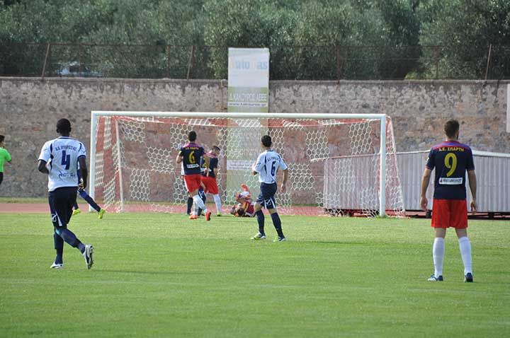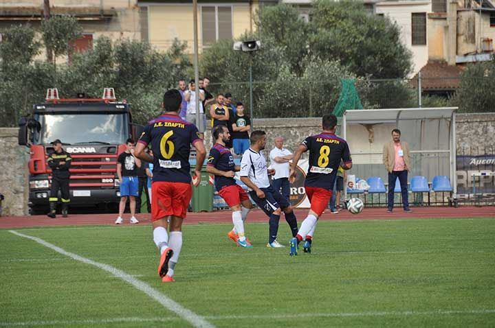 Ο Σεμερτζίδης στο 7' και ο Χαλίλι στο 43' είχαν δώσει προβάδισμα δύο τερμάτων στη Σπάρτη, η οποία έφθασε την Κυπαρισσία στην πρώτη θέση της βαθμολογίας, αλλά δεν υπερτερεί στην ισοβαθμία, καθώς οι δύο ομάδες έχουν από μια νίκη στα μεταξύ τους παιχνίδια και την ίδια διαφορά τερμάτων (1-0 και 2-1).