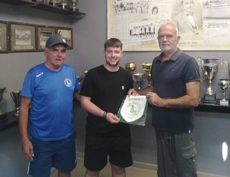Από τον Μεσσηνιακό έλαβε ως ενθύμιο ένα αναμνηστικό λάβαρο, ενώ ο ίδιος ευχήθηκε καλή συνέχεια στην ομάδα στο πρωτάθλημα της Α’ τοπικής,, εκφράζοντας παράλληλα την ελπίδα οι δρόμοι τους να ξανασυναντηθούν στο μέλλον.