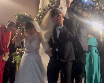 Παρά τη βροχή, τίποτα δεν στάθηκε εμπόδιο στη χαρά του ζευγαριού και των καλεσμένων, που απόλαυσαν κάθε στιγμή αυτής της ξεχωριστής ημέρας.