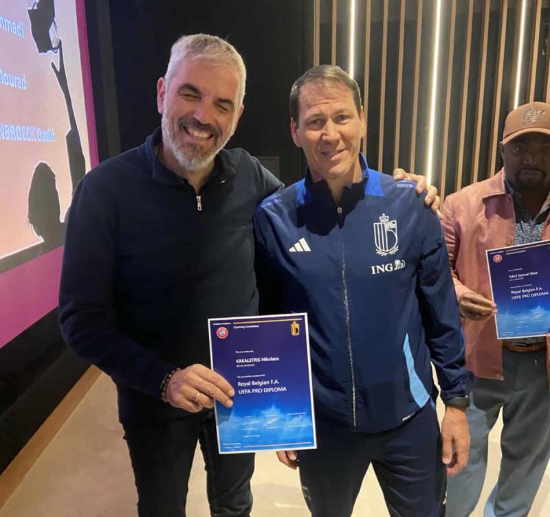 Η απονομή του διπλώματος πραγματοποιήθηκε χθες στην έδρα της RBFA στην Τουμπίζ, σε μια τελετή με έντονο συμβολισμό και διεθνή χαρακτήρα, παρουσία κορυφαίων προπονητών και στελεχών του βελγικού ποδοσφαίρου, μεταξύ των οποίων και ο Ομοσπονδιακός Τεχνικός των "κόκκινων διαβόλων", Ρούντι Γκαρσία, με θητεία σε Λυών, Μαρσέιγ, Ρόμα, Νάπολι και άλλους συλλόγους.