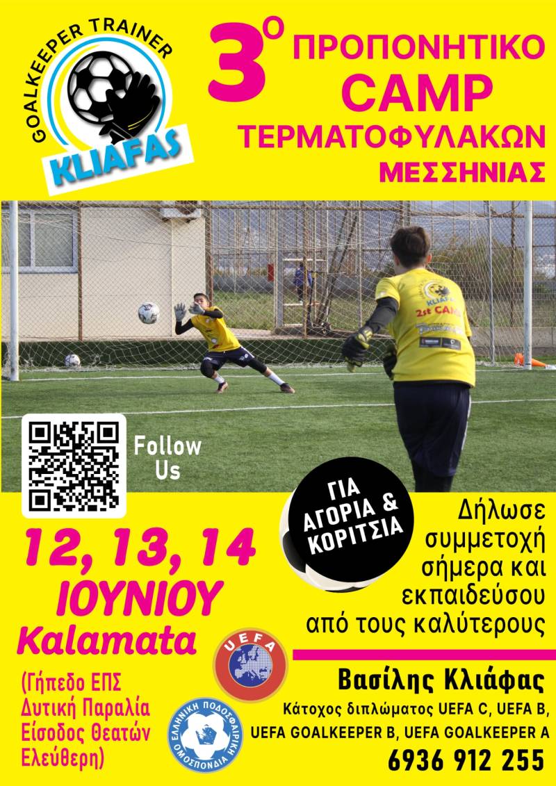 3ο Προπονητικό Camp Τερματοφυλάκων στην Καλαμάτα με τον Βασίλη Κλιάφα