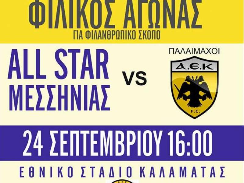 Στις 24 Σεπτεμβρίου το φιλικό All Star Μεσσηνίας – Παλαίμαχοι ΑΕΚ