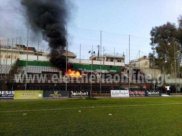 Φωτιά στην εξέδρα των οπαδών του Πανηλειακού