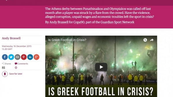 "Υπάρχει ελπίδα για το ελληνικό ποδόσφαιρο;" διερωτάται ο "Guardian"