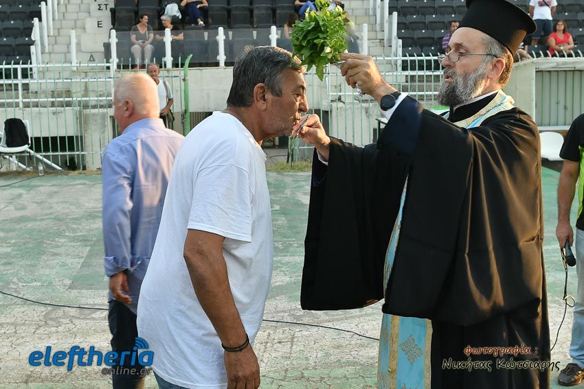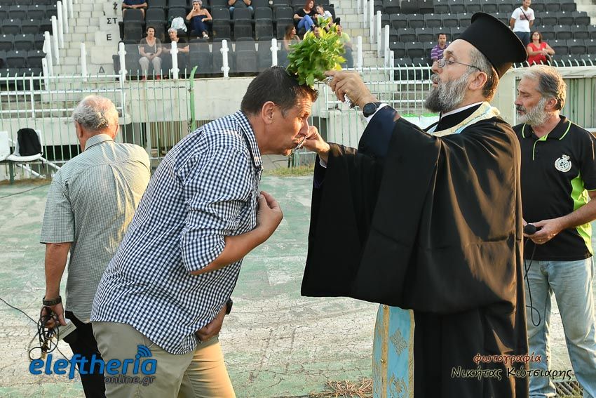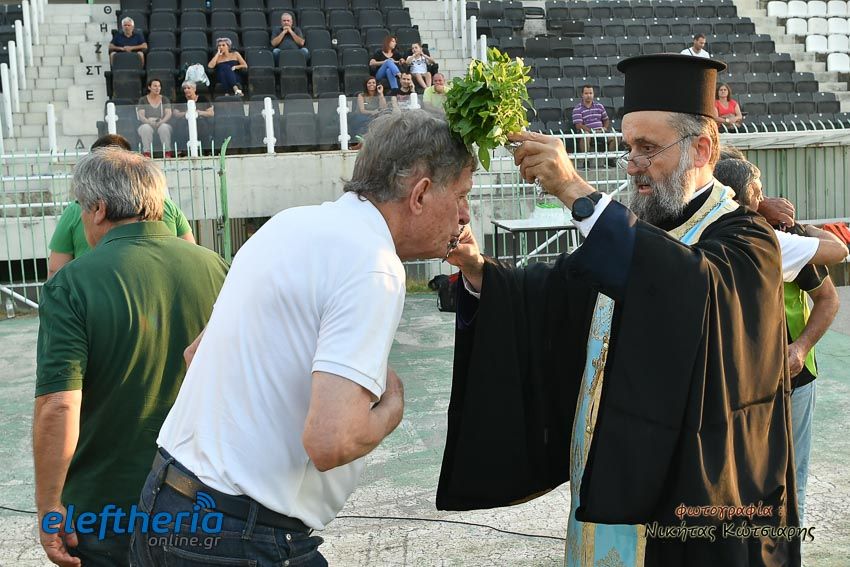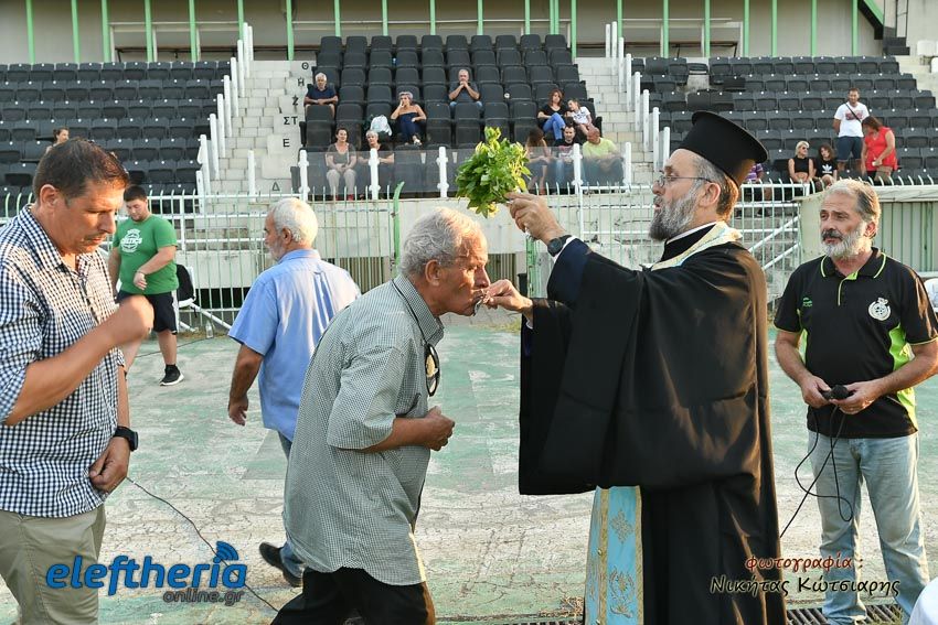Οι ομάδες βόλεϊ, ποδοσφαίρου, αλλά και οι αθλητές του στίβου μαζί με προπονητές, παράγοντες και φίλους βρέθηκαν στο ιστορικό γήπεδο του συλλόγου για να πάρουν την ευλογία ενόψει των αγωνιστικών προκλήσεων που έρχονται.