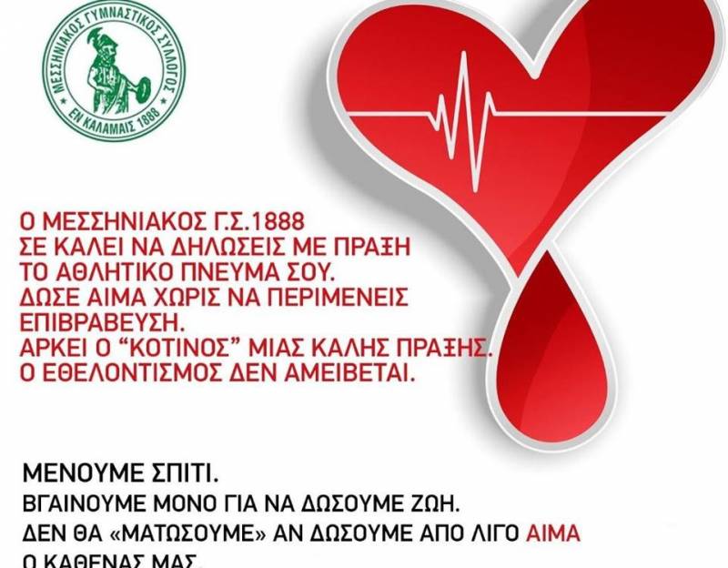 ΚΑΛΕΣΜΑ ΜΕΣΣΗΝΙΑΚΟΥ ΓΙΑ ΑΙΜΟΔΟΣΙΑ: "Μένουμε σπίτι, βγαίνουμε μόνο για να δώσουμε ζωή"