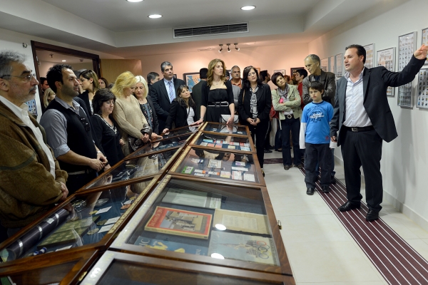 Μετά τις τοποθετήσεις άπαντες κατευθύνθηκαν στο χώρο της έκθεσης, όπου ο Τ. Παπαδόπουλος έκοψε την κορδέλα και πλήθος κόσμου ξεναγήθηκε σε αυτό το ταξίδι που έχει έξι ενότητες.Η πρώτη περιλαμβάνει 16 ολυμπιακές δάδες, από το 1936 με την ολυμπιακή δάδα του Βερολίνου έως τη δάδα του Λονδίνου το 2012.Στη δεύτερη υπάρχουν 4.750 ολυμπιακές θεματικές καρφίτσες (pins), εκ των οποίων οι 3.000 έχουν θέμα τους Ολυμπιακούς Αγώνες της Αθήνας 2004. Κάποιες καρφίτσες συνθέτουν ολοκληρωμένες σειρές με μικρό τιράζ και έχουν μεγάλη συλλεκτική αξία. Στην τρίτη ενότητα ο επισκέπτης θα δει εισιτήρια θερινών και χειμερινών Ολυμπιακών Αγώνων, με εισιτήρια από τους Ολυμπιακούς του 1900 στο Παρίσι καθώς και επίσημα και ημερήσια προγράμματα αγώνων από το 1932 έως σήμερα. Στην επόμενη ενότητα υπάρχει σπάνιο φωτογραφικό υλικό με φωτογραφίες της μέσο - Ολυμπιάδας Αθηνών το 1906 έως τις μέρες μας. Στη φωτογραφική αυτή συλλογή αναδεικνύονται προσωπικότητες των Ολυμπιακών Αγώνων. Η πέμπτη ενότητα περιλαμβάνει συλλεκτικά προσωπικά αντικείμενα Ελλήνων Ολυμπιονικών και Παραολυμπιονικών. Επίσης υπάρχουν στολές λαμπαδηδρόμων από το 1996 μέχρι το 2012. Η έκτη και τελευταία ενότητα περιλαμβάνει βιβλία Ολυμπιακών Αγώνων μεγάλης συλλεκτικής αξίας από το 1932 έως σήμερα.