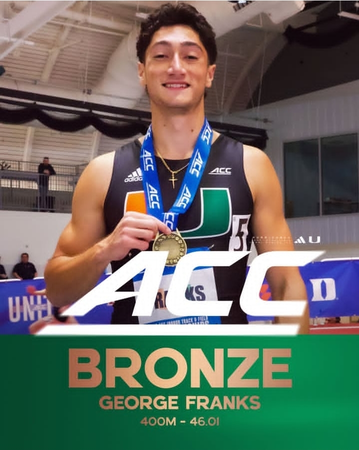 Οι επιτυχίες συνεχίζονται για τον Γιώργο Φρανκς του Μεσσηνιακού. Ο ομογενής αθλητής συμμετείχε στην διοργάνωση κλειστού στίβου ACC Indoor Championships, που έγινε από 26 έως 28 Φεβρουαρίου στη Βοστώνη και μετά από εντυπωσιακή εμφάνιση στα 400 μέτρα, κατέκτησε το χάλκινο μετάλλιο με χρόνο 46’’.01.