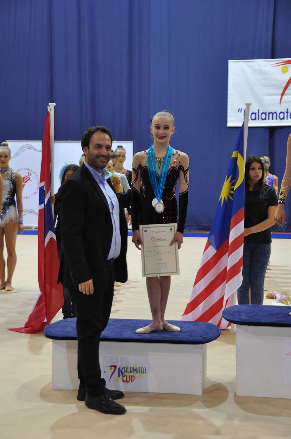 Στο βάθρο και μάλιστα τέσσερις φορές ανέβηκε και η Μυρτώ Αθανασουλάκη του ΦΟΚ! Η Μεσσήνια αθλήτρια πήρε το χρυσό μετάλλιο στην μπάλα και το αργυρό σε σχοινάκι, στεφάνι και κορίνες στην κατηγορία των νεανίδων. Καλή εμφάνιση έκανε και η δεύτερη αθλήτρια που εκπροσώπησε τη Μεσσηνία, η Ζωή Πουλοπούλου. Ηταν 6η στο στεφάνι (11,650), 7η (μαζί με την Μπερναρντ από τον Καναδά) στο σχοινάκι (10,650), 8η στην μπάλα (9,850) και 8η στις κορίνες (11,150).